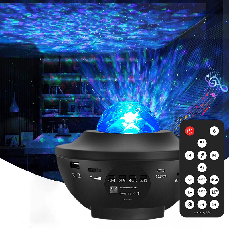 Four-color water-pattern lights combined with green laser, 10 lighting modes.