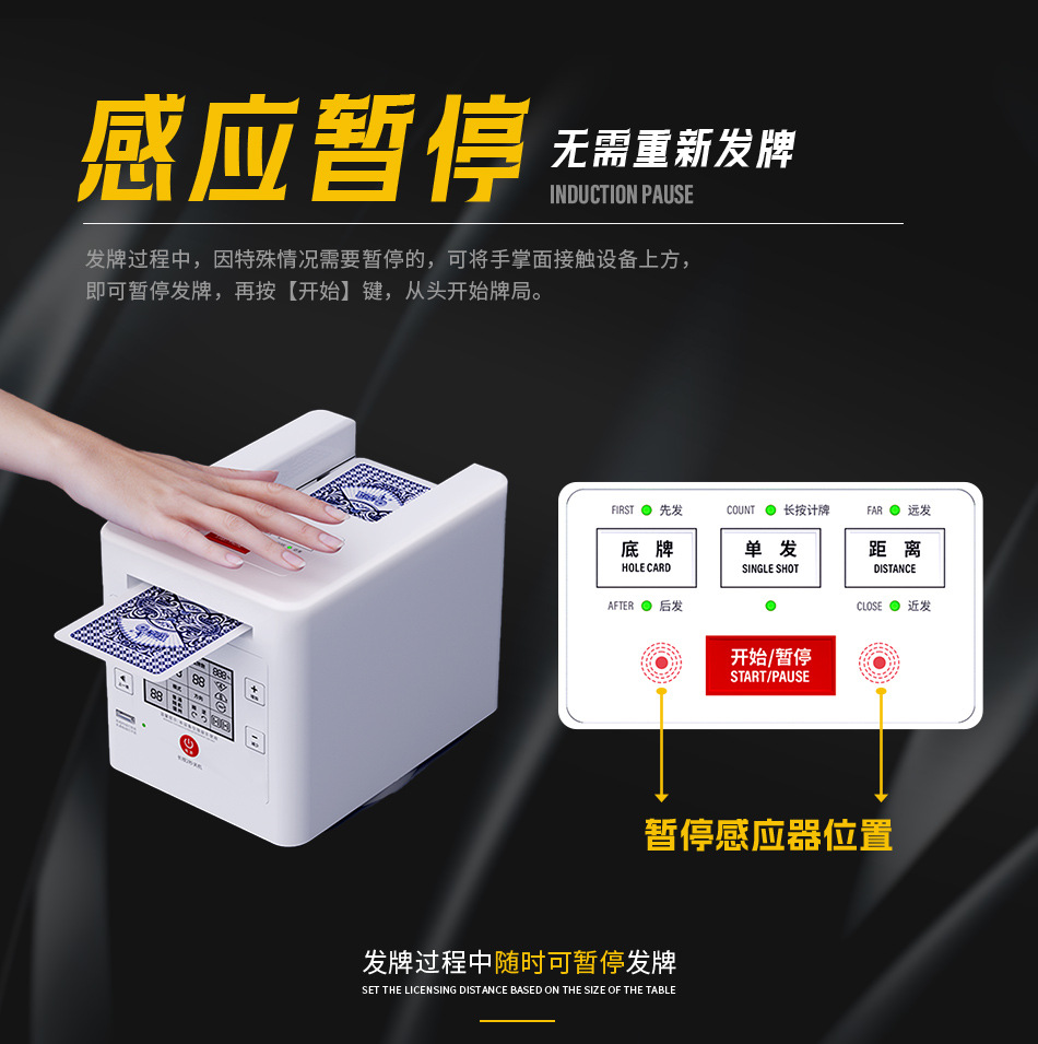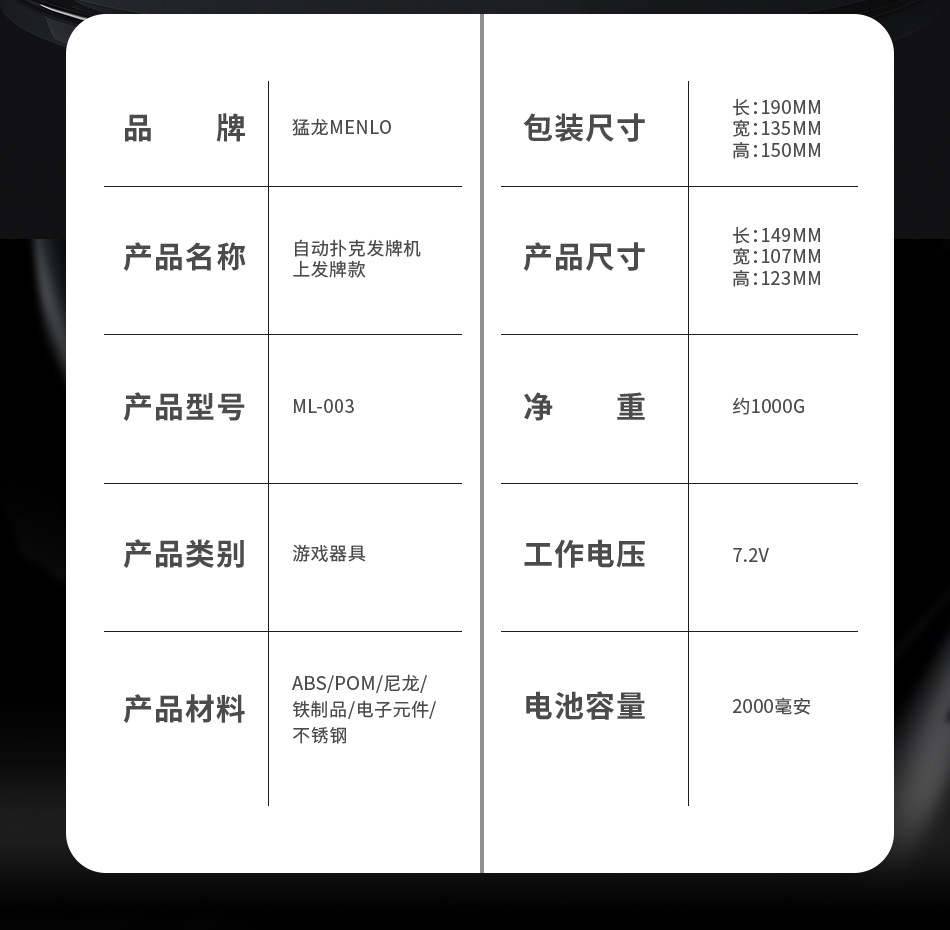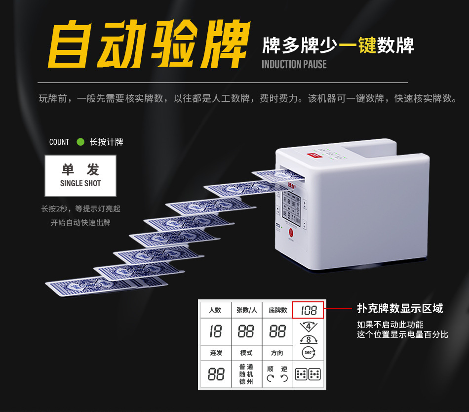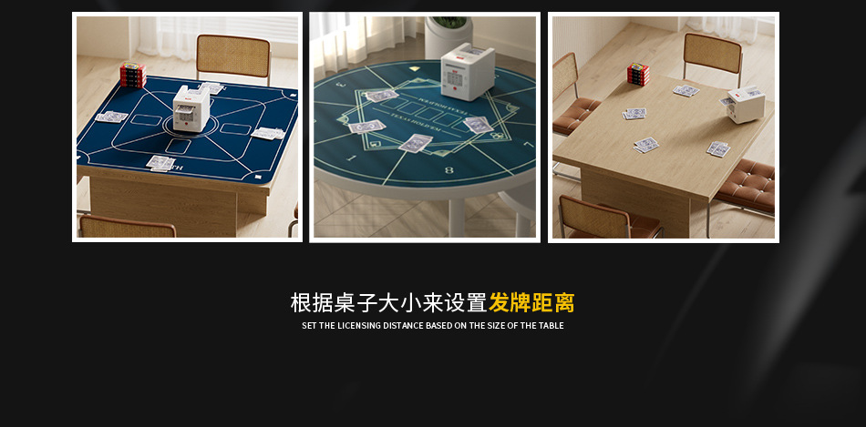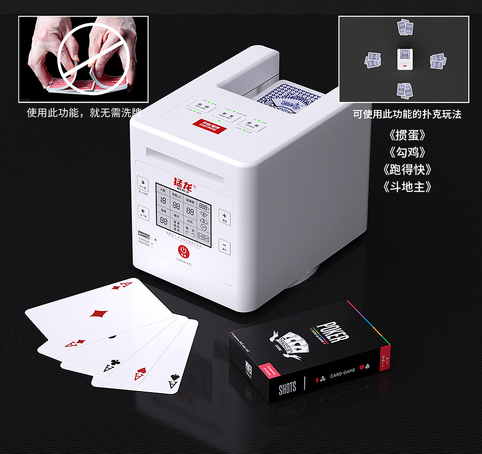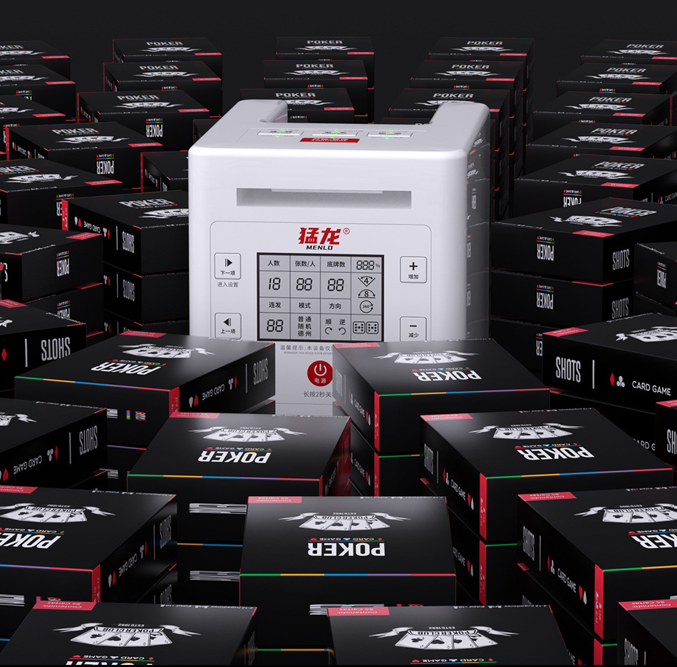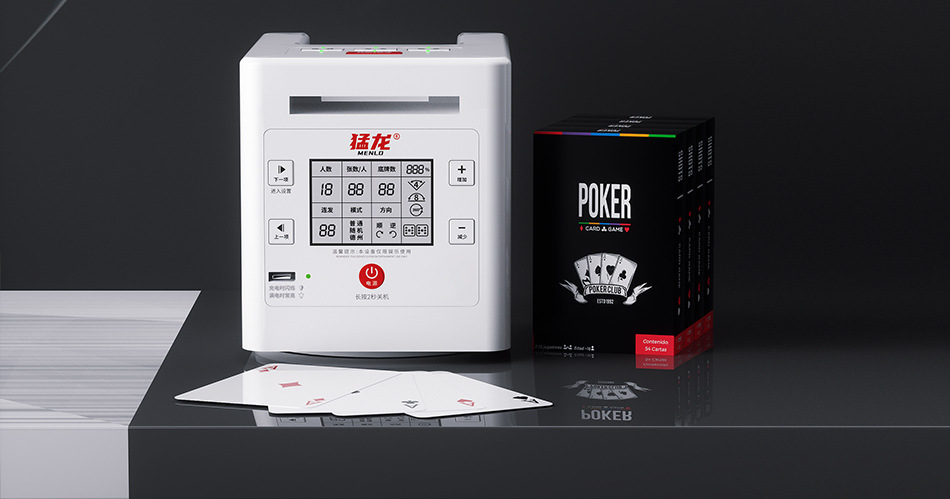 3rd generation dealing device +2 pairs of poker +1 table mat +1 set of chips