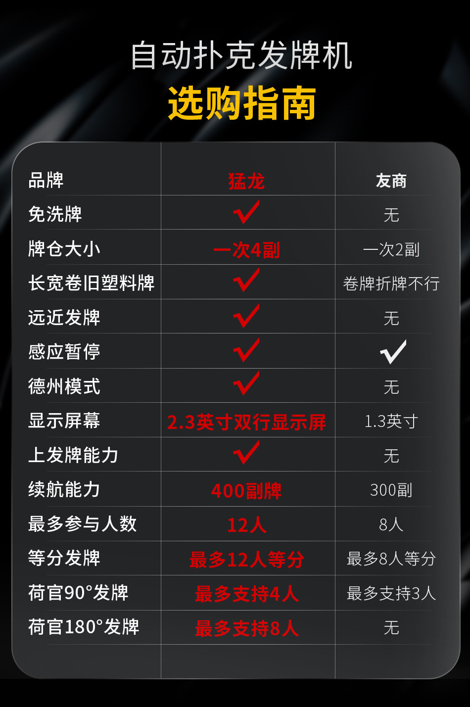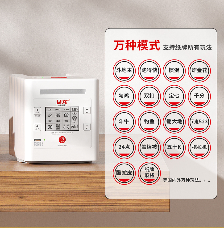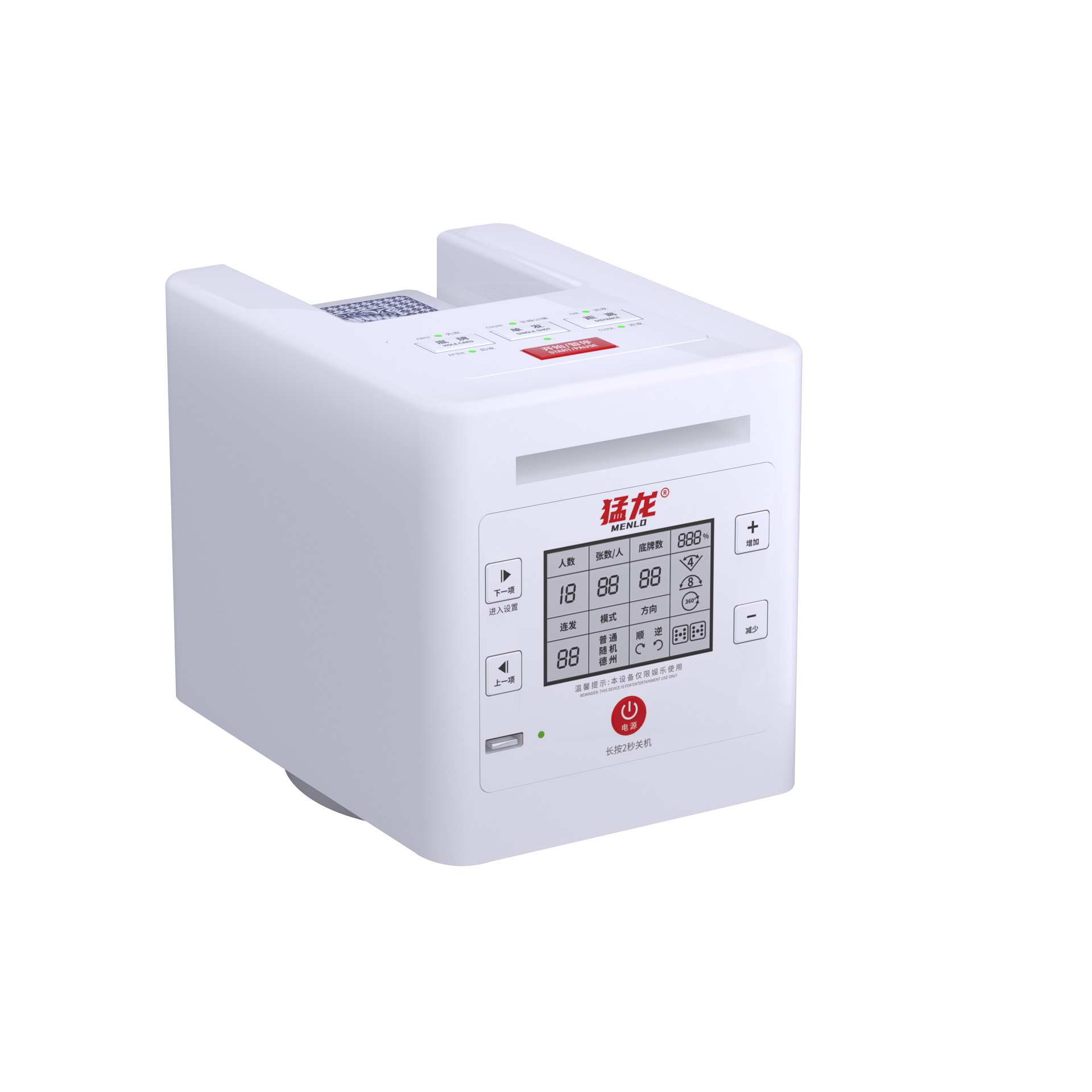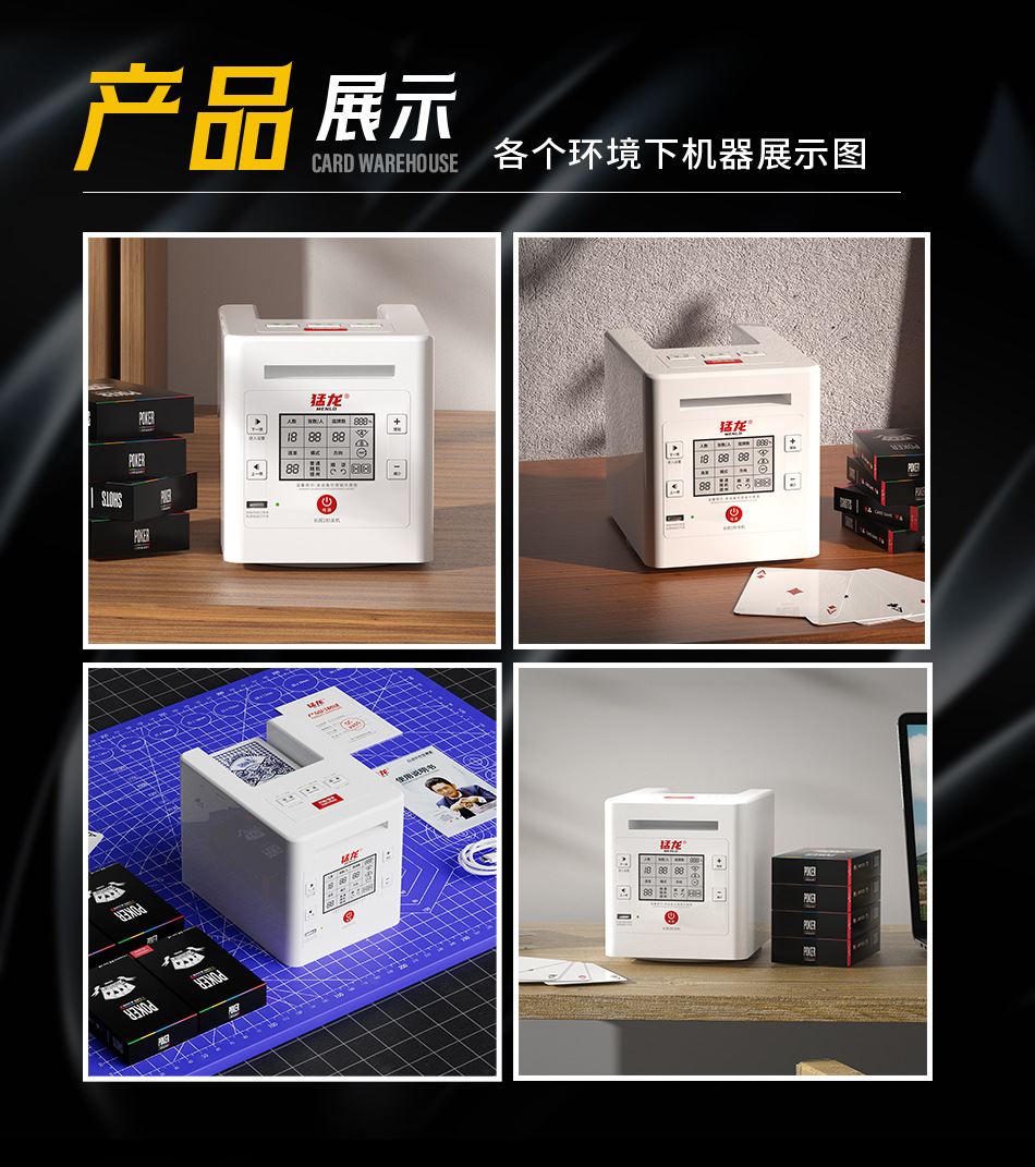 3rd generation dealing device +2 pairs of poker +1 table mat +1 set of chips