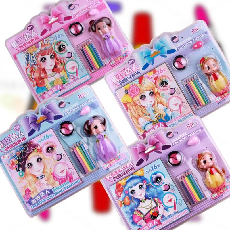 Accessories: 4 pieces of colored paintings + makeup eye shadow + 5 colored pencils + lipstick