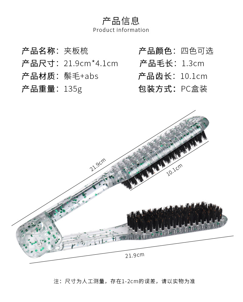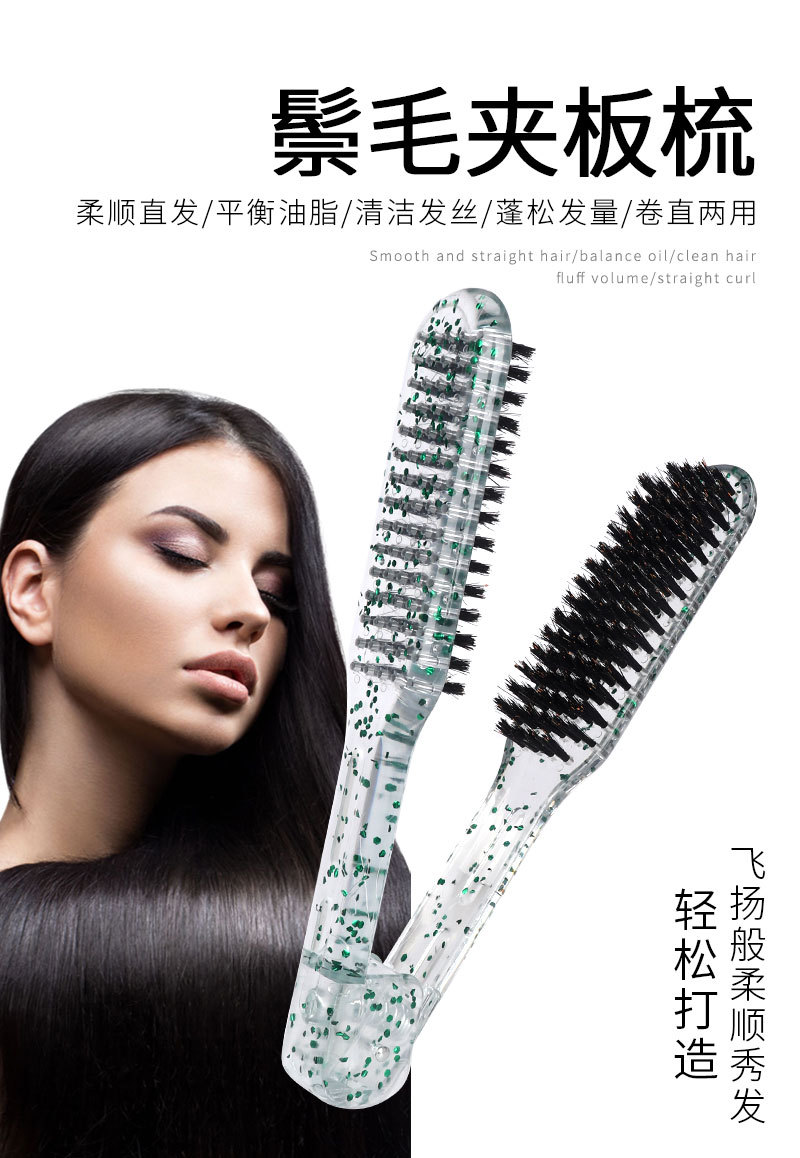 amazon colorful flash hair v-shaped clamp comb high temperature resistant hair curling comb hair salon bristle straightening clamp comb 中文版