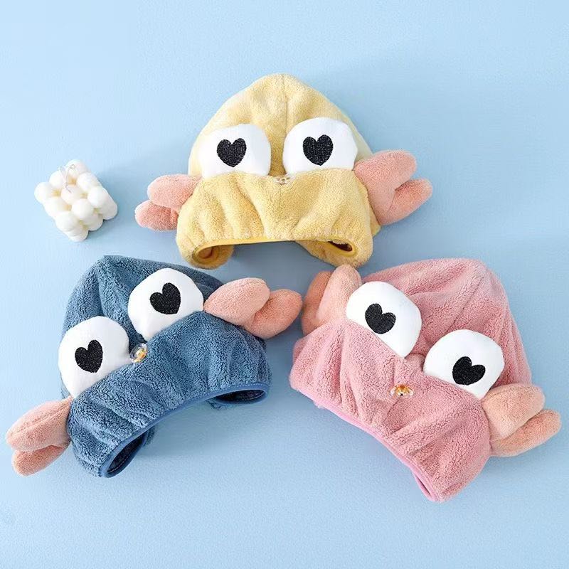 crab hair-drying cap cartoon edge-covered hair drying towel wipe hair towel coral velvet women's bag headscarf absorbent