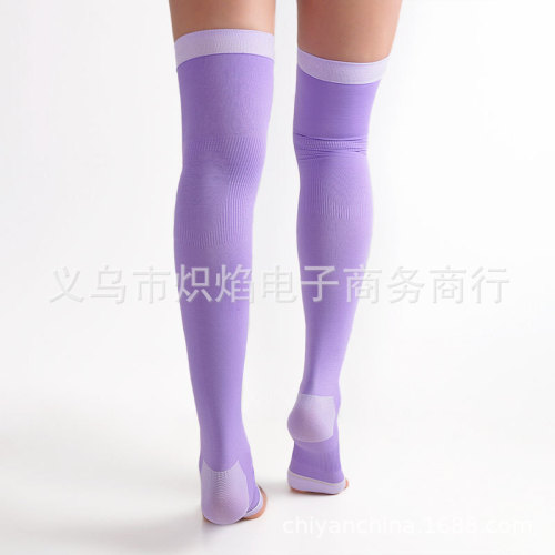 Japanese 2022 trend: pink nightwear with elastic socks for pressure and shapely legs, open-toe stockings, long-sleeve sleep socks.