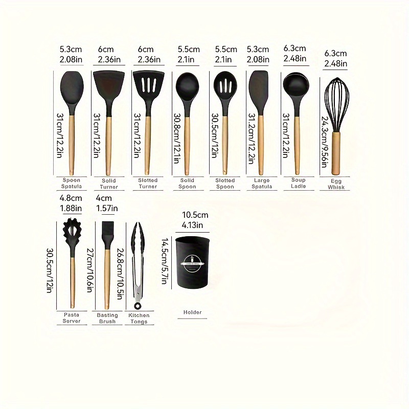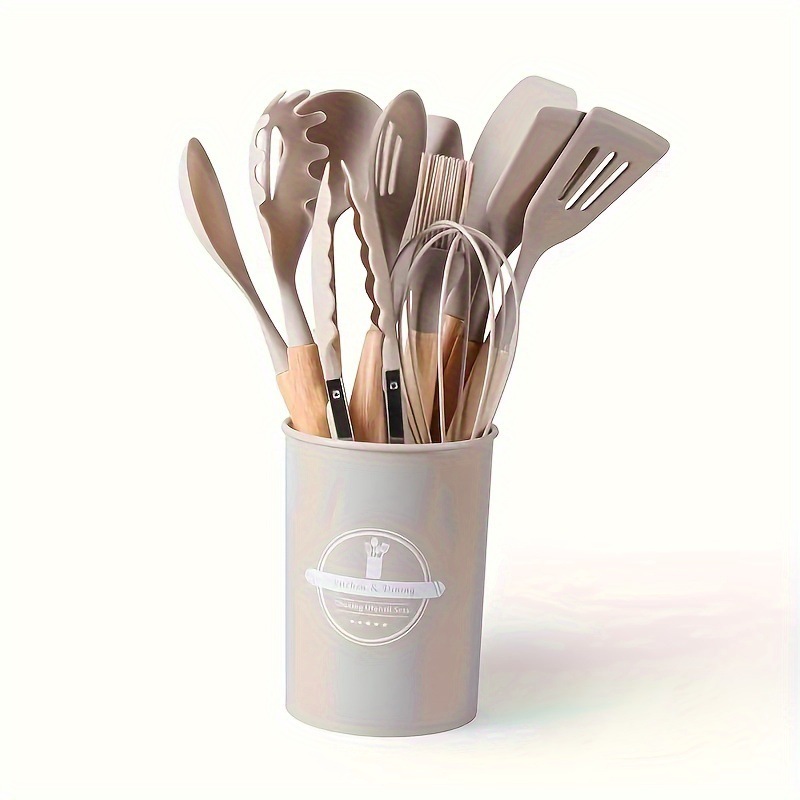 12-piece cooking non-stick pan wooden handle silicone kitchenware set storage container ladel spatula kitchen silicone tools
