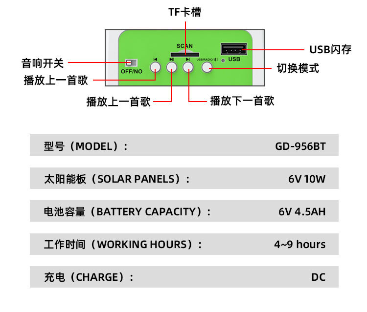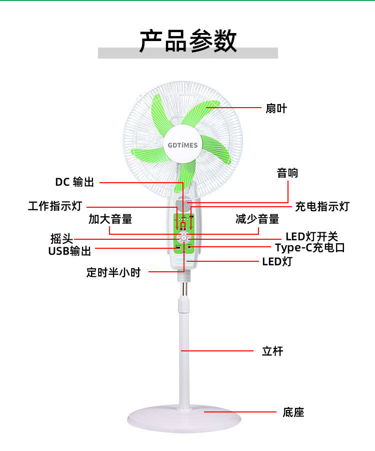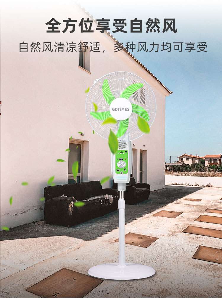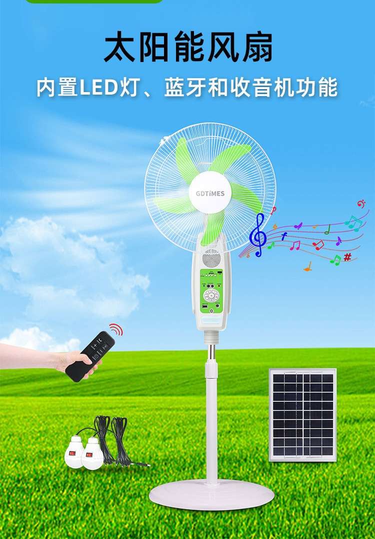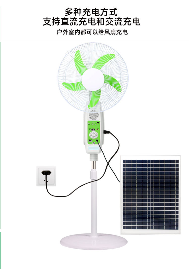 new solar fan lighting night 16-inch solar panel remote control bluetooth multi-gear adjustable floor fan 中文版