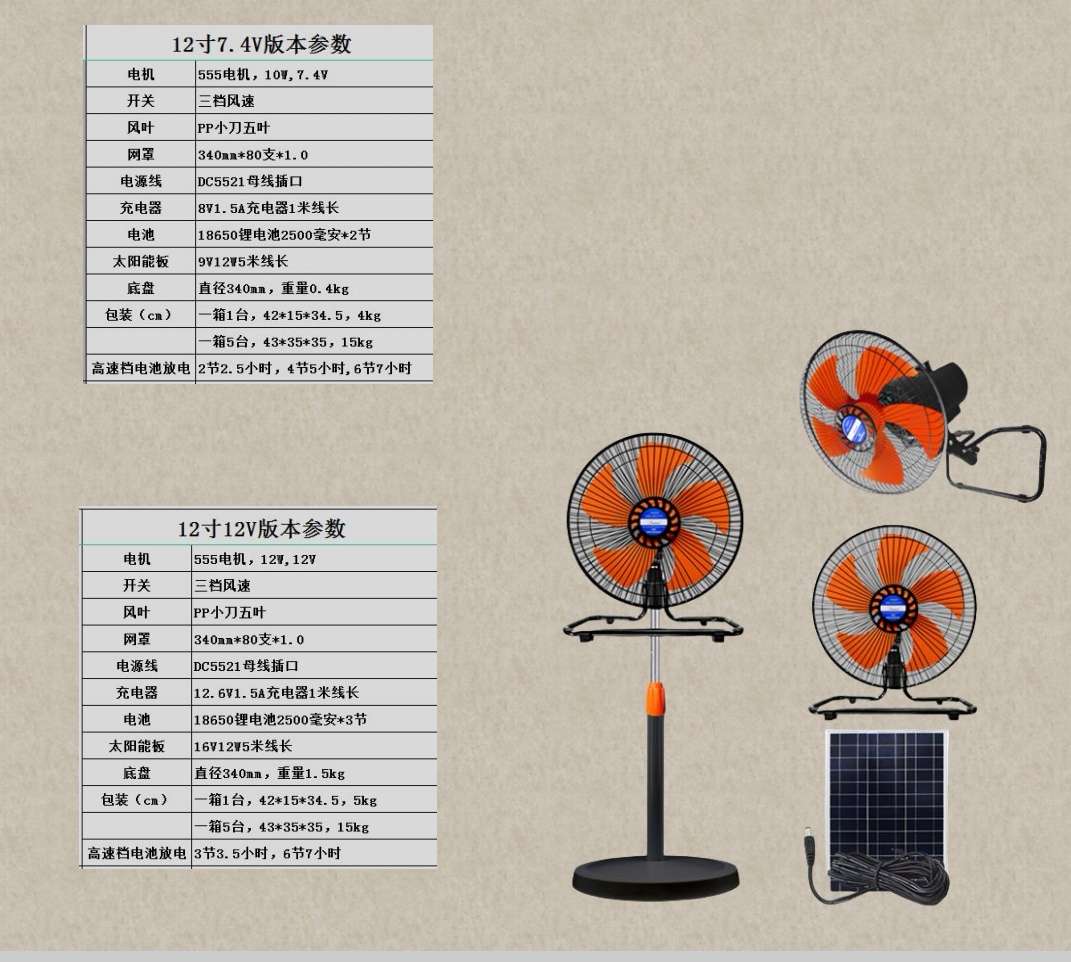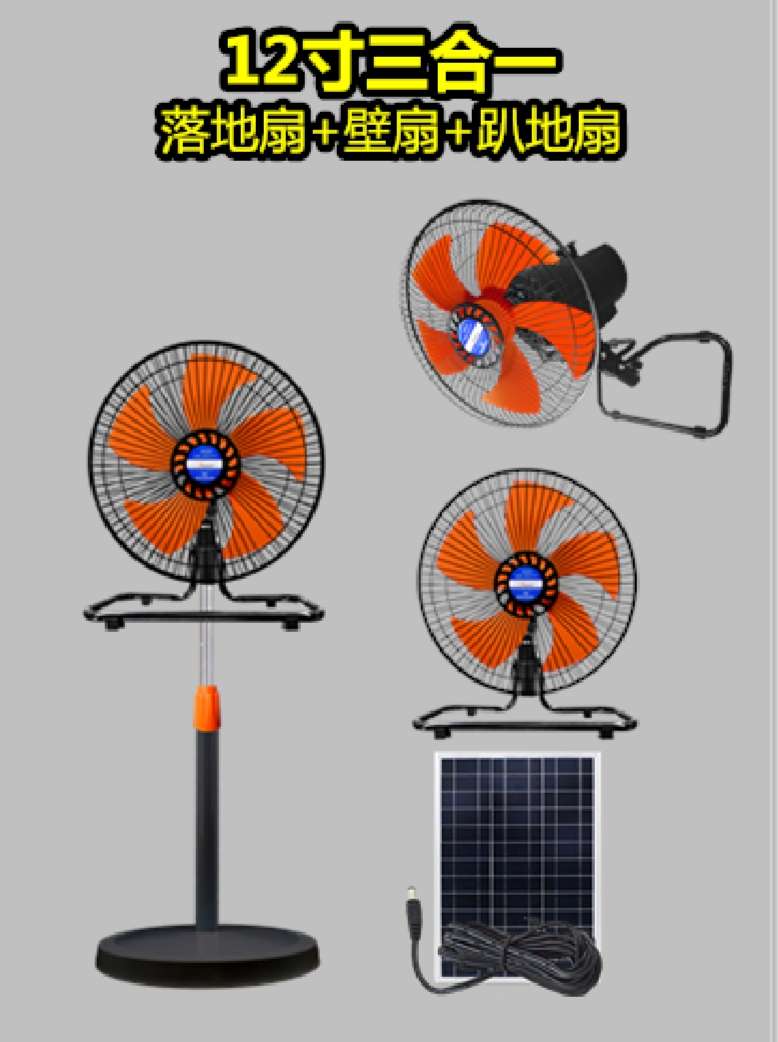 solar energy recharge fan wind power 12-inch household outdoor mute 中文版