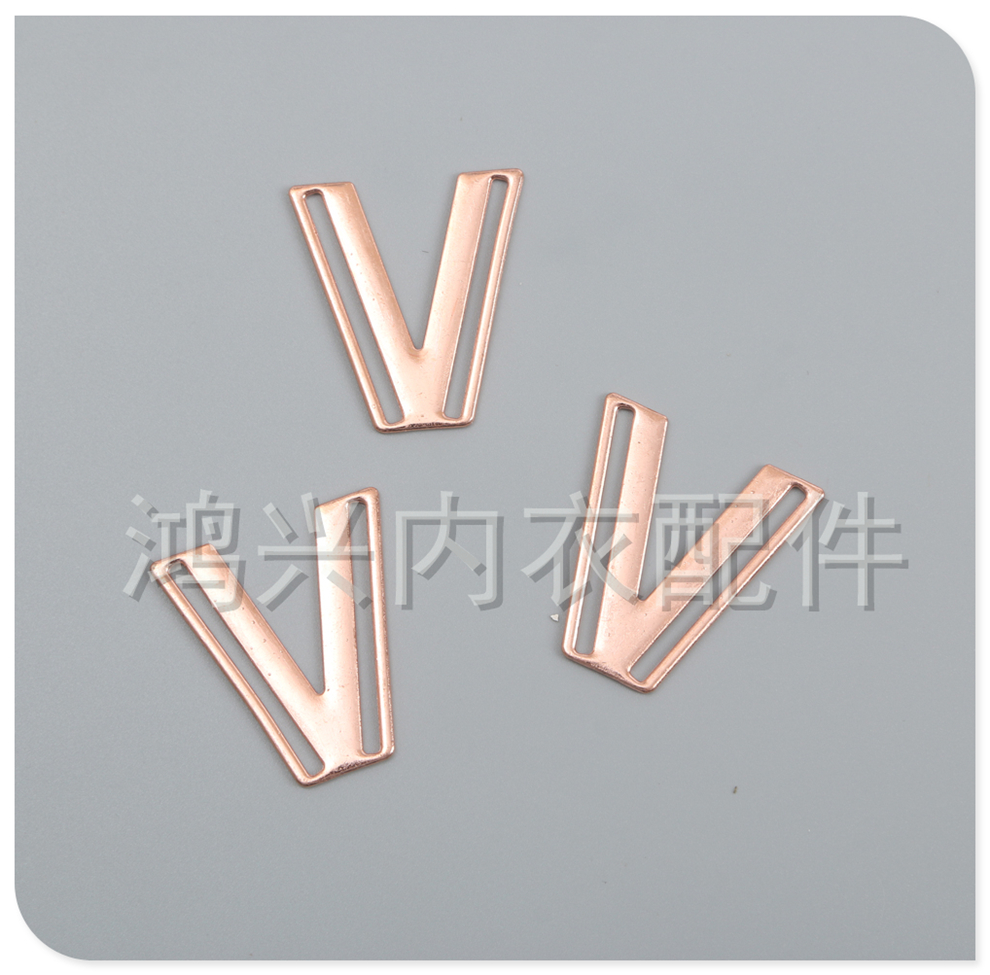 Product Name: Rose Gold Metal Texture V-Shape Clasp Swimsuit V-Shape Clasp Bikini Chest Adjustment Decorative Clasp Direct Factory Supply