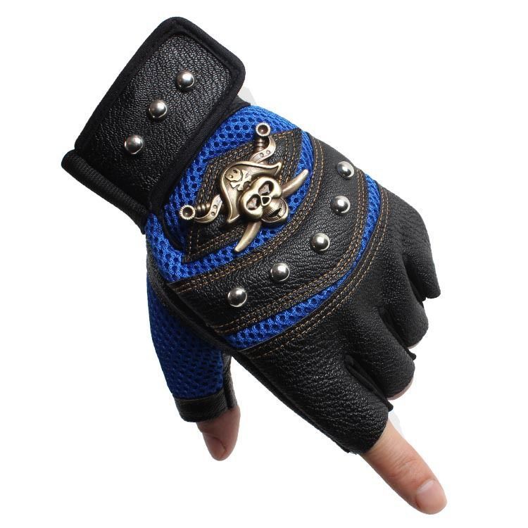 pirate skull half finger blue gloves-w14536-5