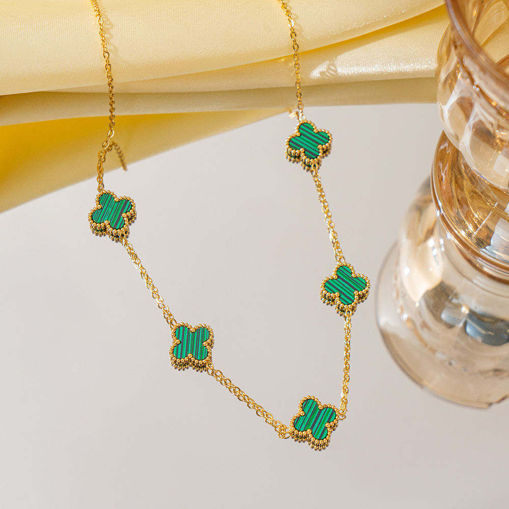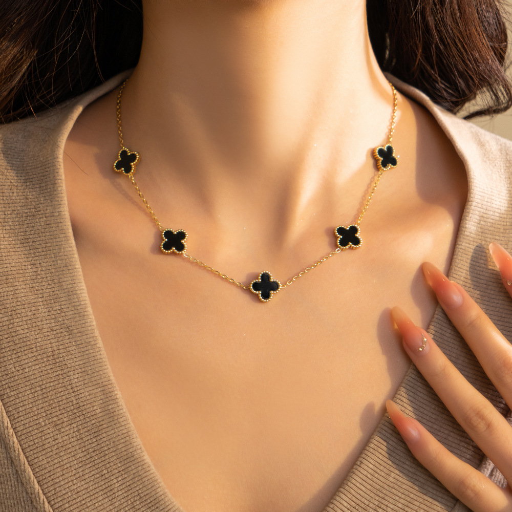 clover necklace women's high-grade cross-border double-sided titanium steel no fading high-grade sweater chain clover 中文版