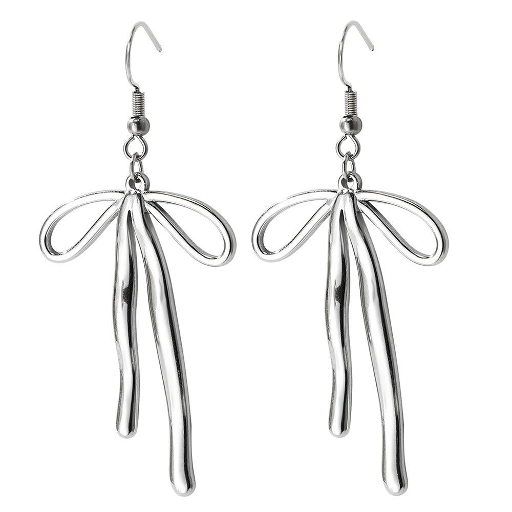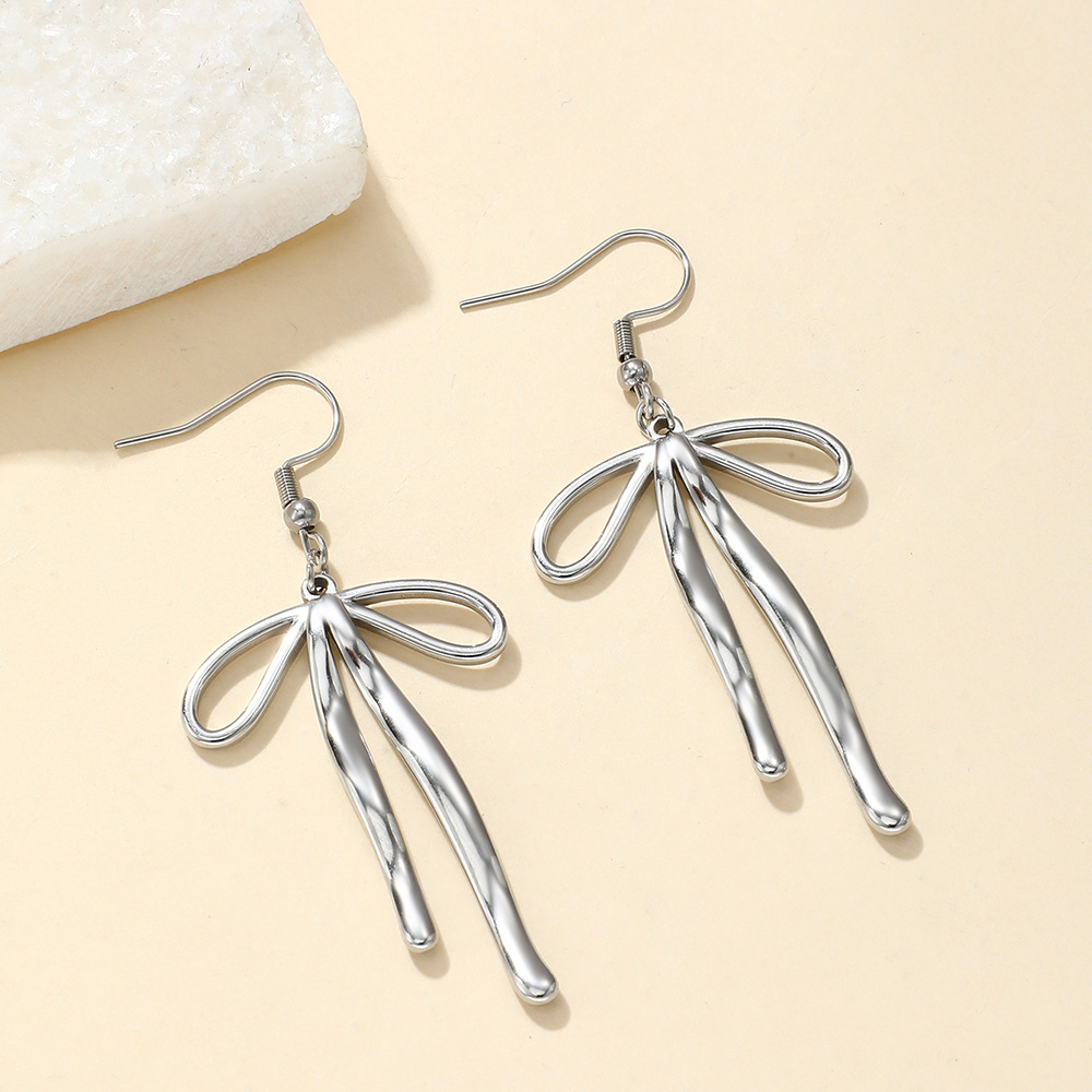 Europe and America Cross Border Ins Style Personality Fashion 18K Gold Stainless Steel Bow Earring Ornament 中文版