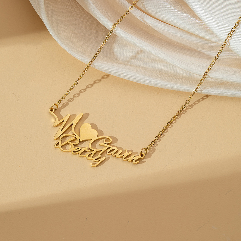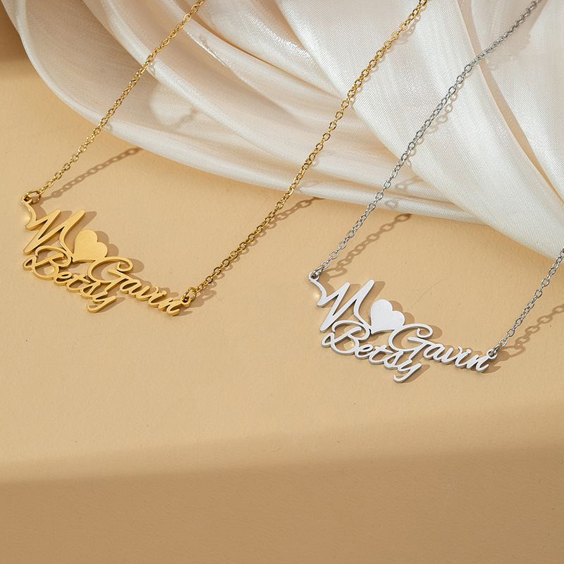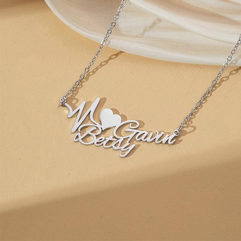 amazon hot customized stainless steel heart letter pendant fashion simple cut english name necklace jewelry 中文版
