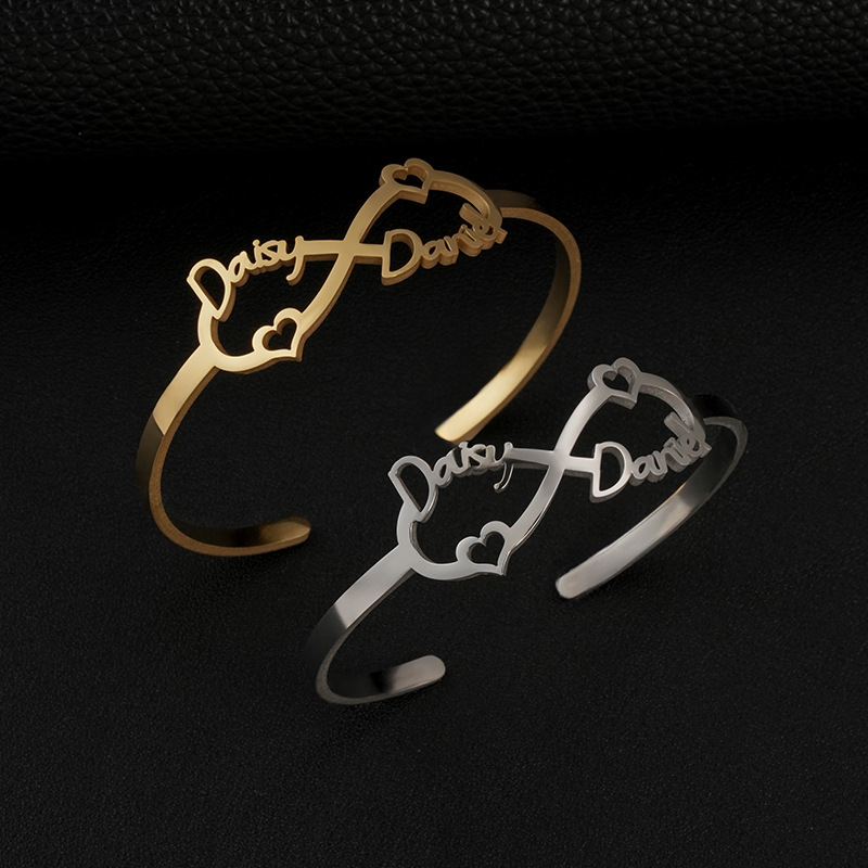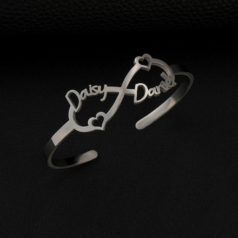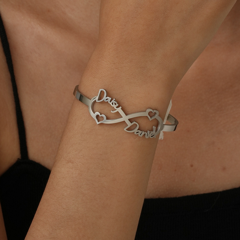 europe and america cross border customized stainless steel cut english name bracelet fashion infinite symbol letter bracelet bracelet 中文版