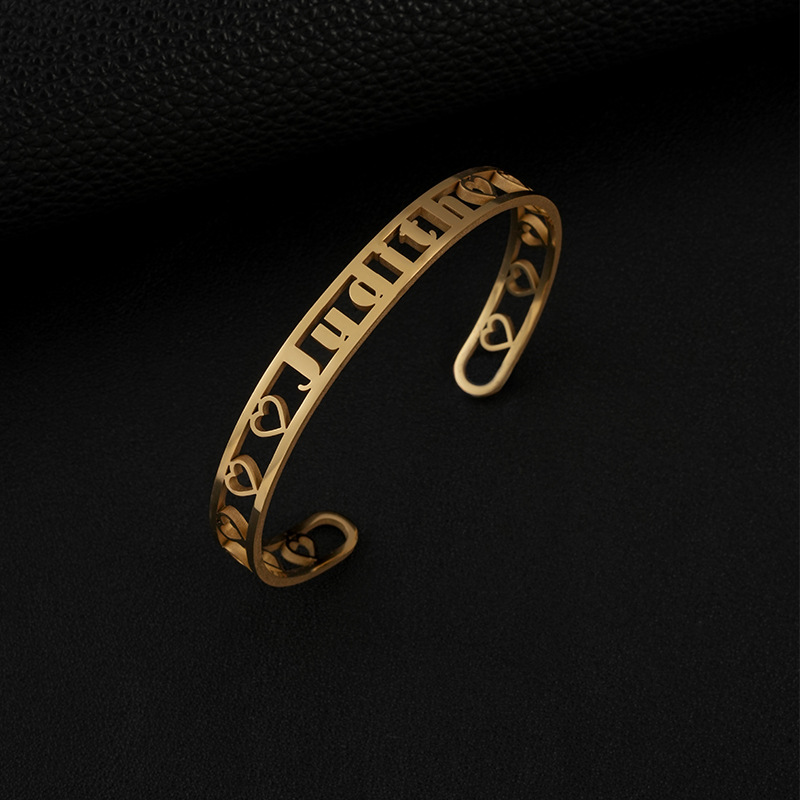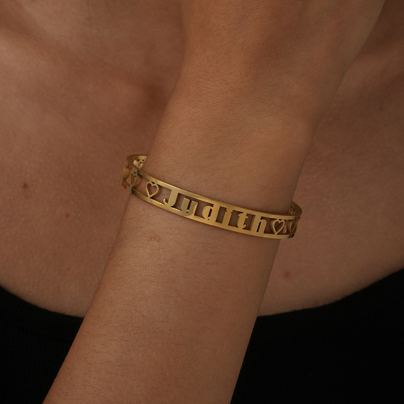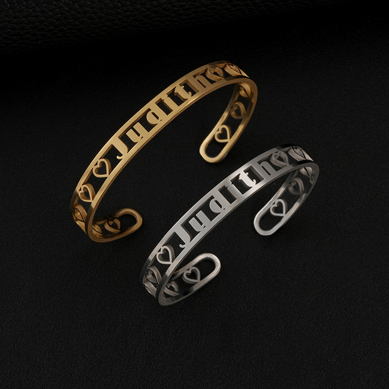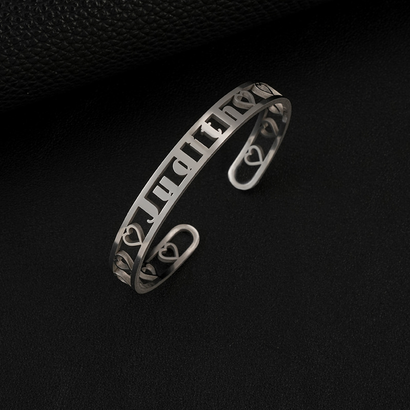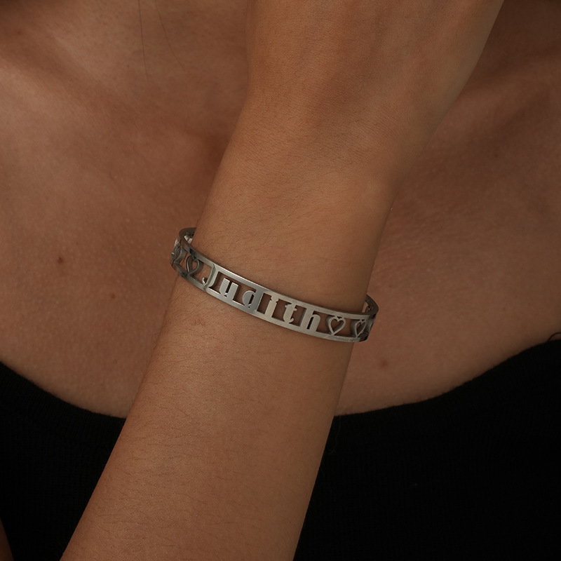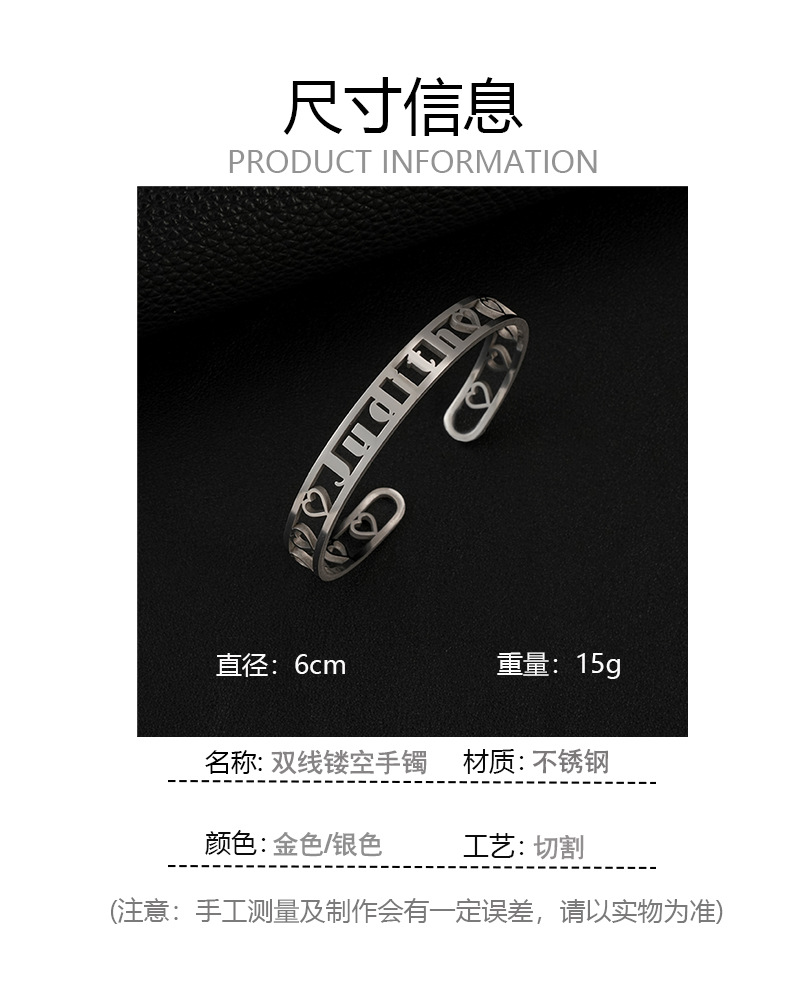 one custom cross-border fashion stainless steel double-line hollow letter bracelet fashion cutting english name wristband bracelet 中文版