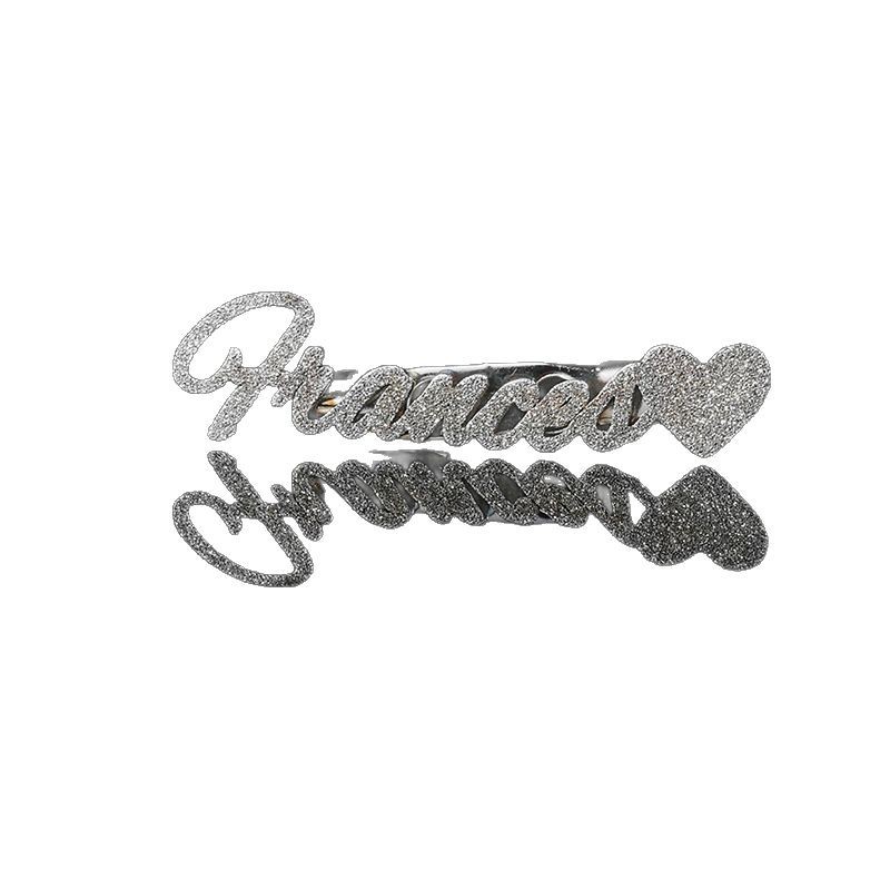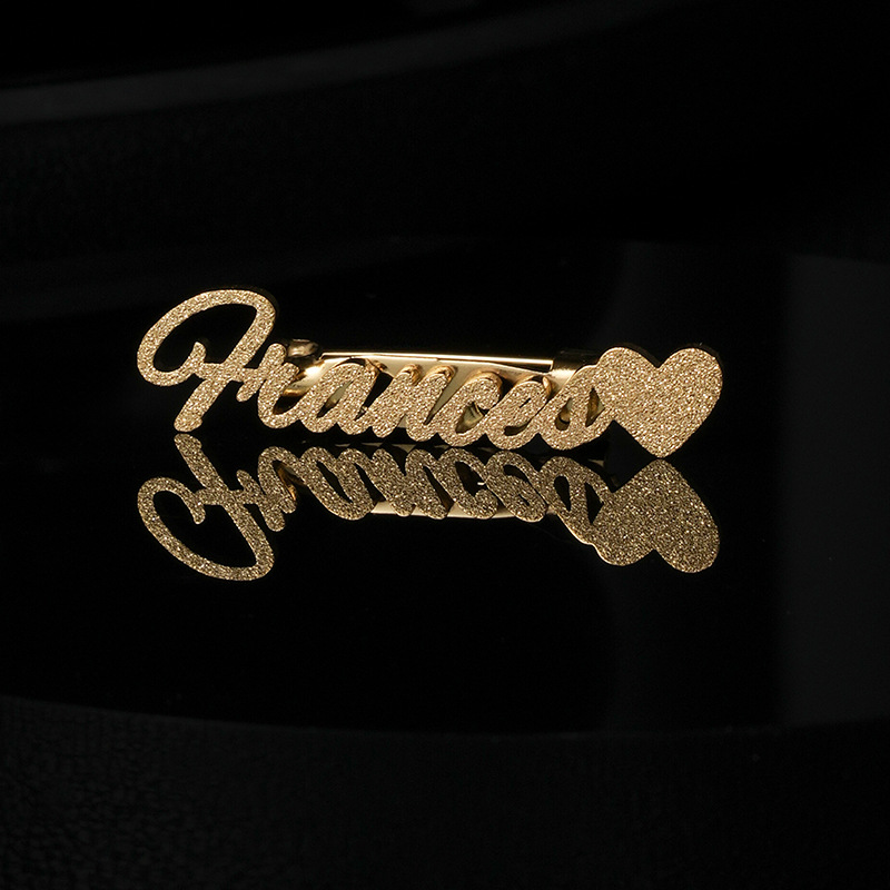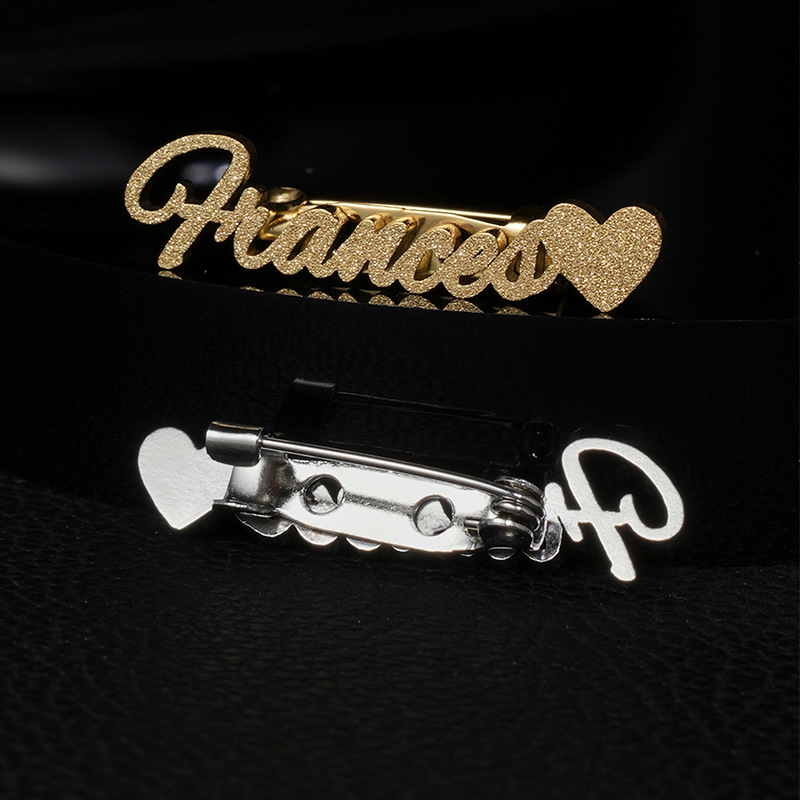 amazon hot sale custom frosted love heart letter brooch fashion stainless steel cutting english name collar pin anniversary gift 中文版