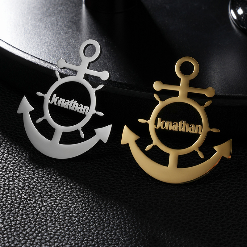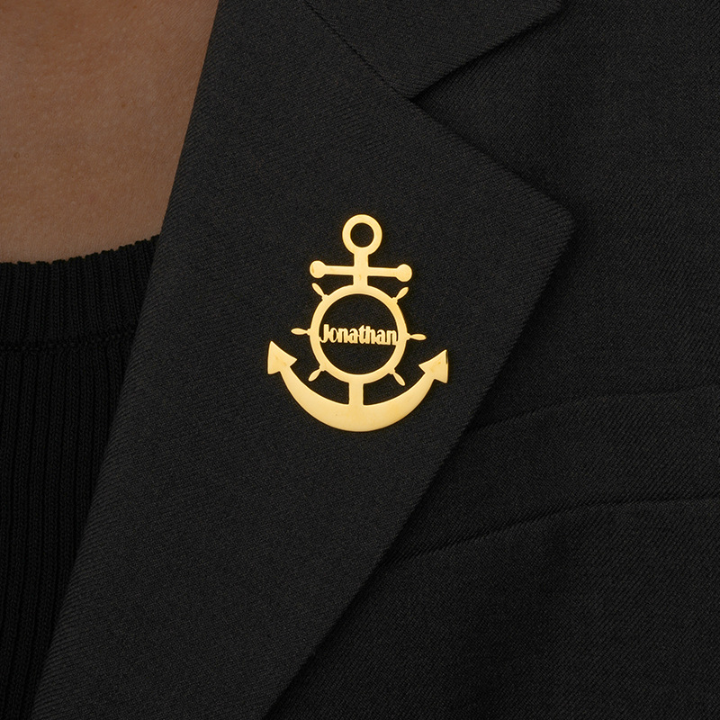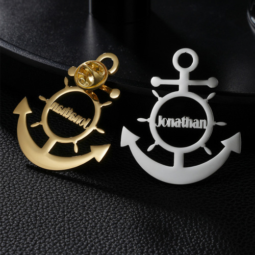 europe and america cross border customized stainless steel rudder brooch fashion cutting english letters anti-revealing collar pin personality breastpin 中文版