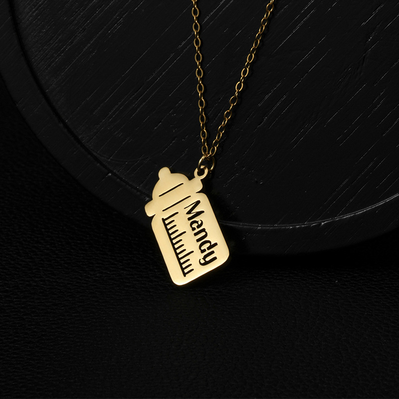 european and american fashion custom stainless steel feeding bottle cutting letter necklace personalized custom english name pendant jewelry