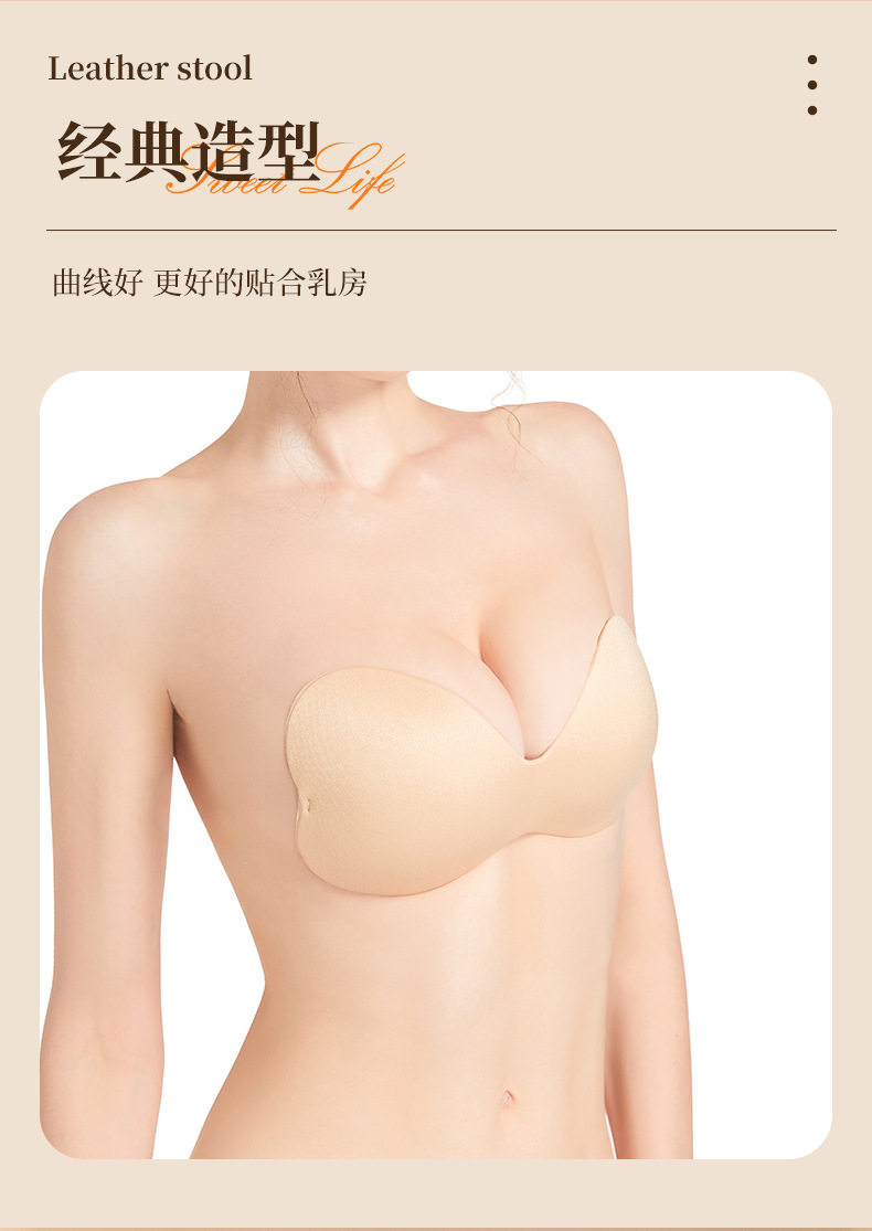 heart-shaped round cup chest paste summer thin section traceless gather the invisible bra. non-slip glossy upper support breast pad manufacturer 中文版
