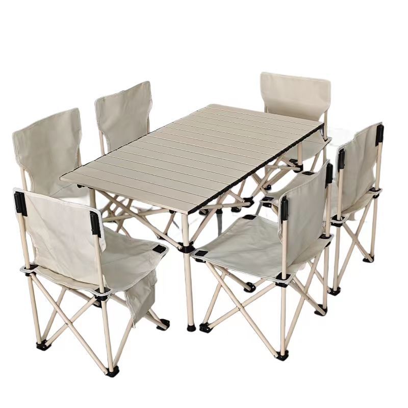 beige 120 long table with 6 pieces beige bottom width 39cm chair carbon steel