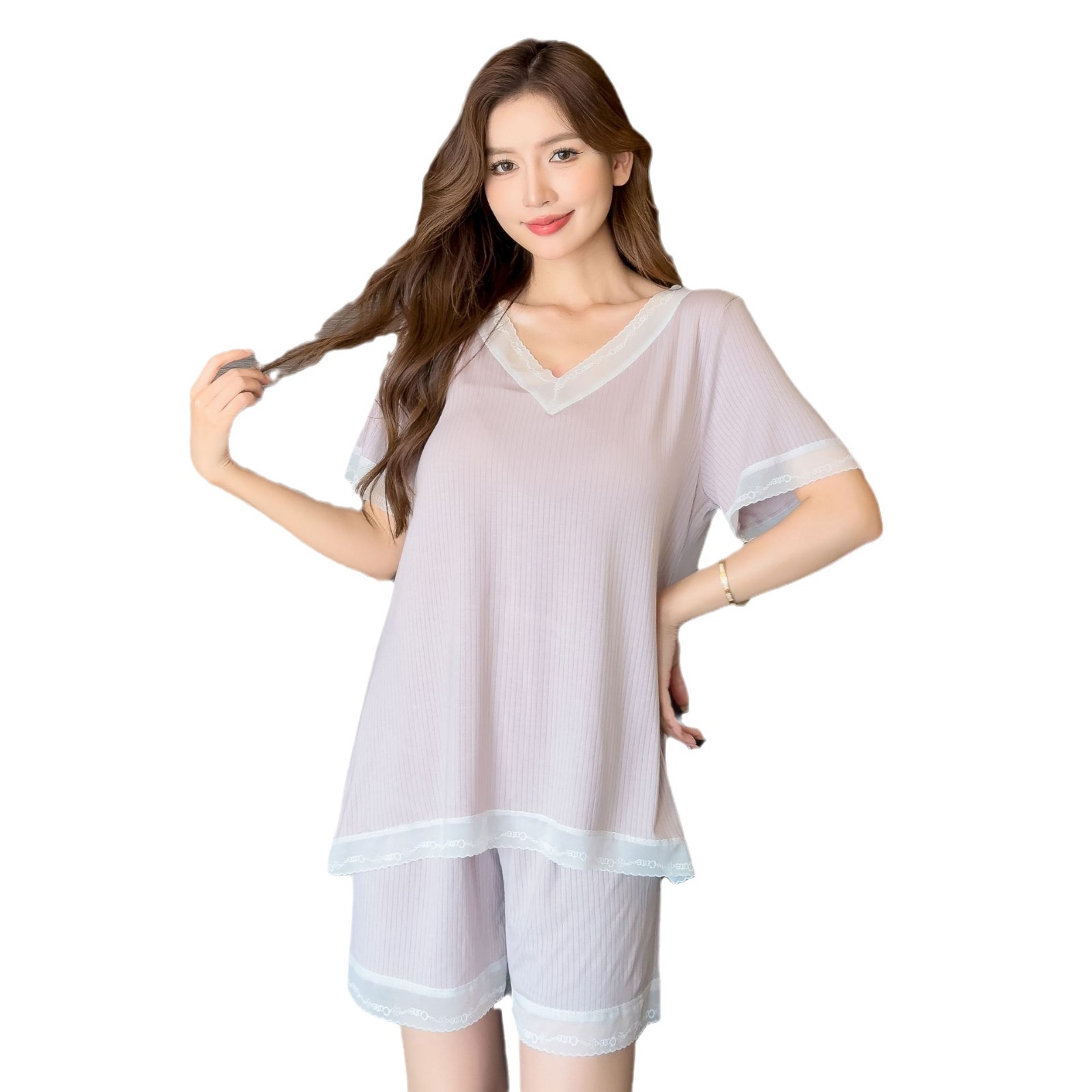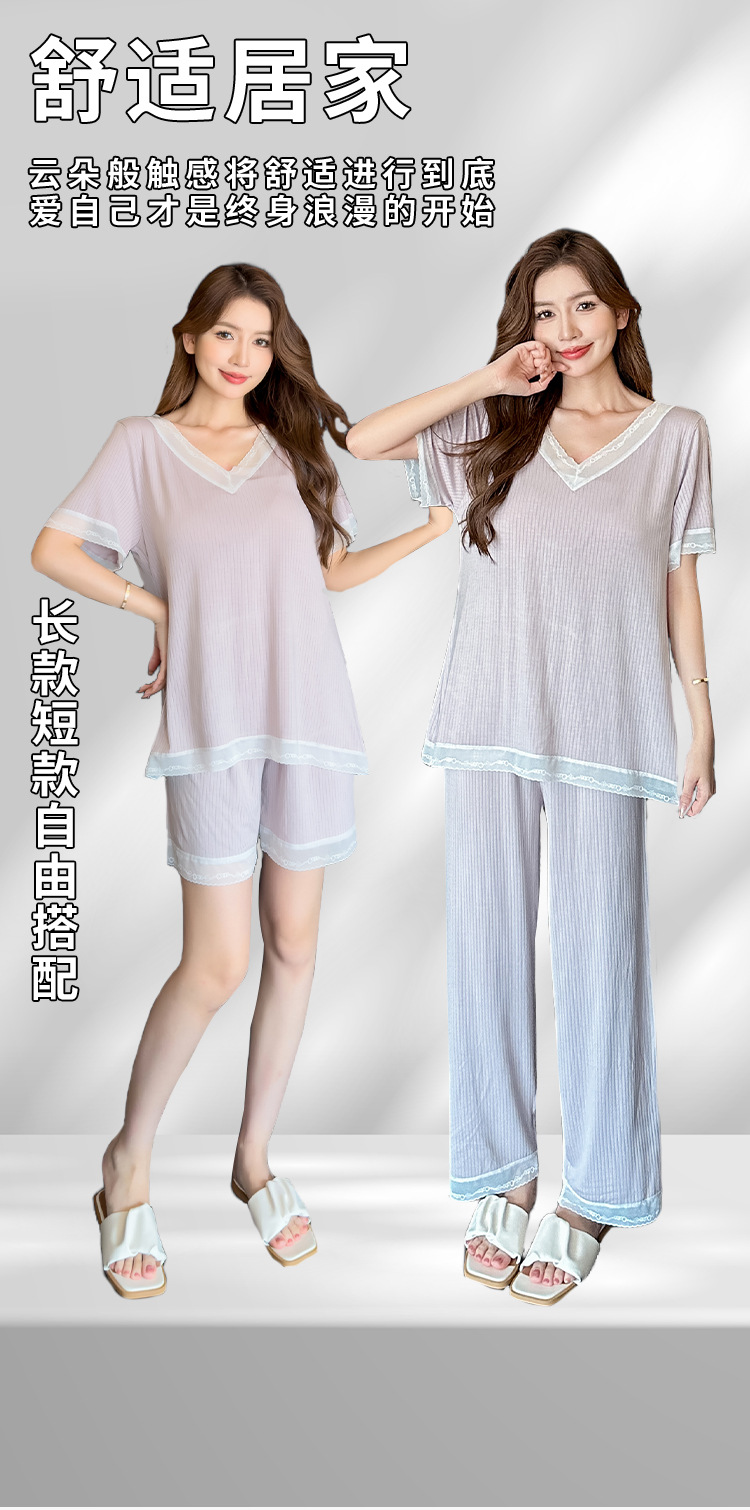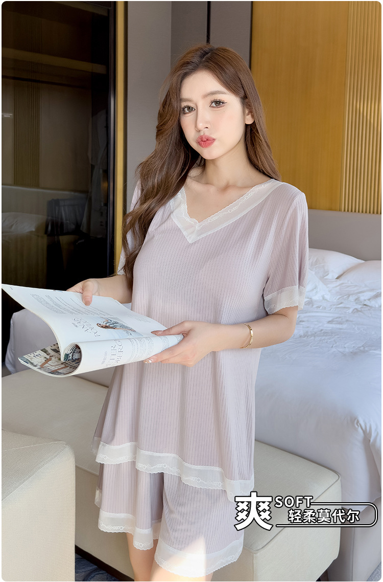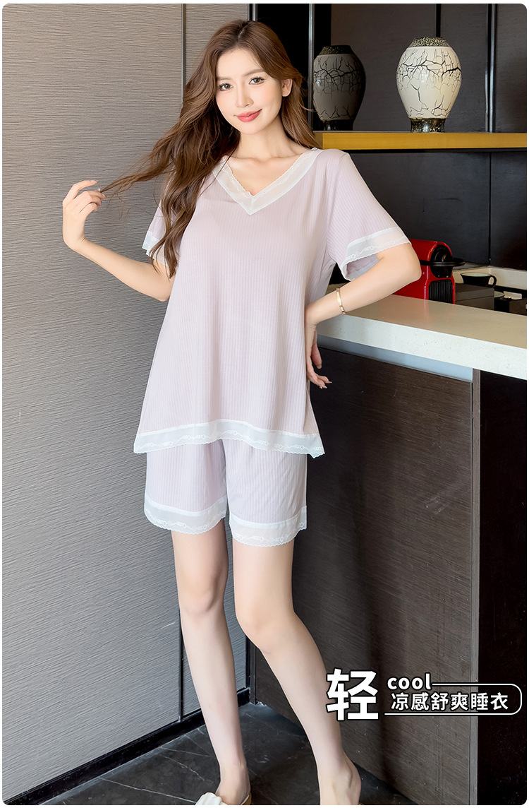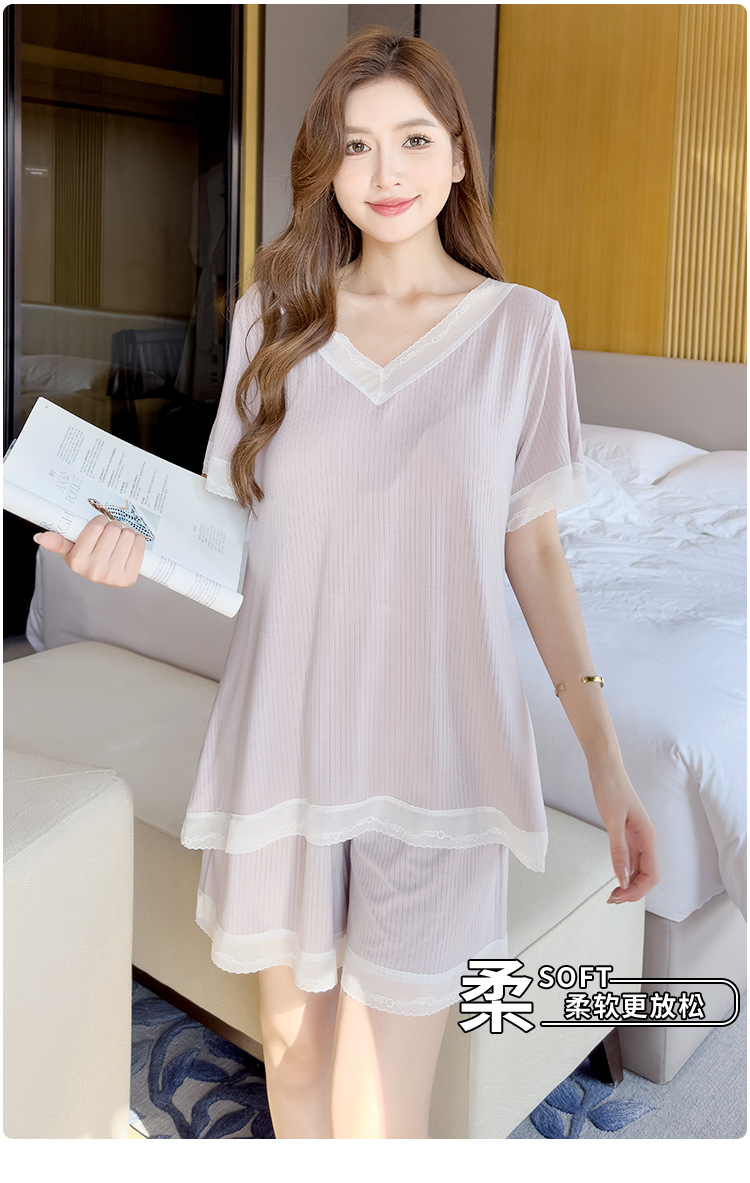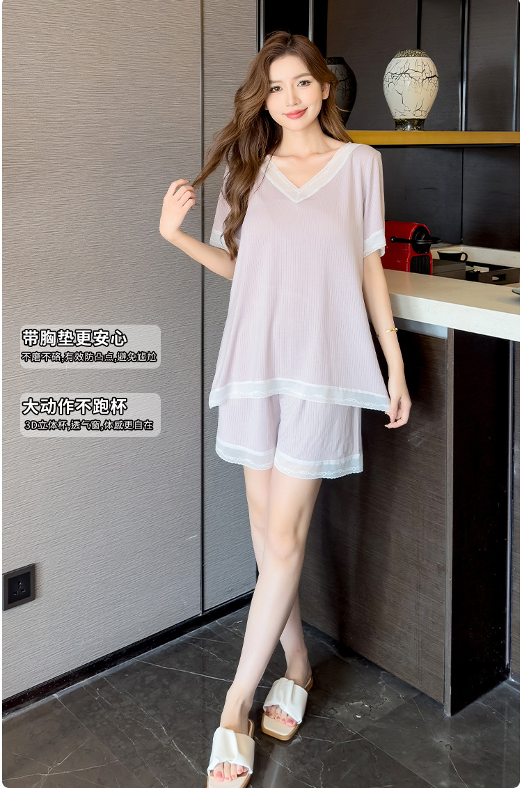 v-neck lace plus size pajamas nightdress summer ladies' homewear short sleeve thin loose soft and comfortable with chest pad 中文版