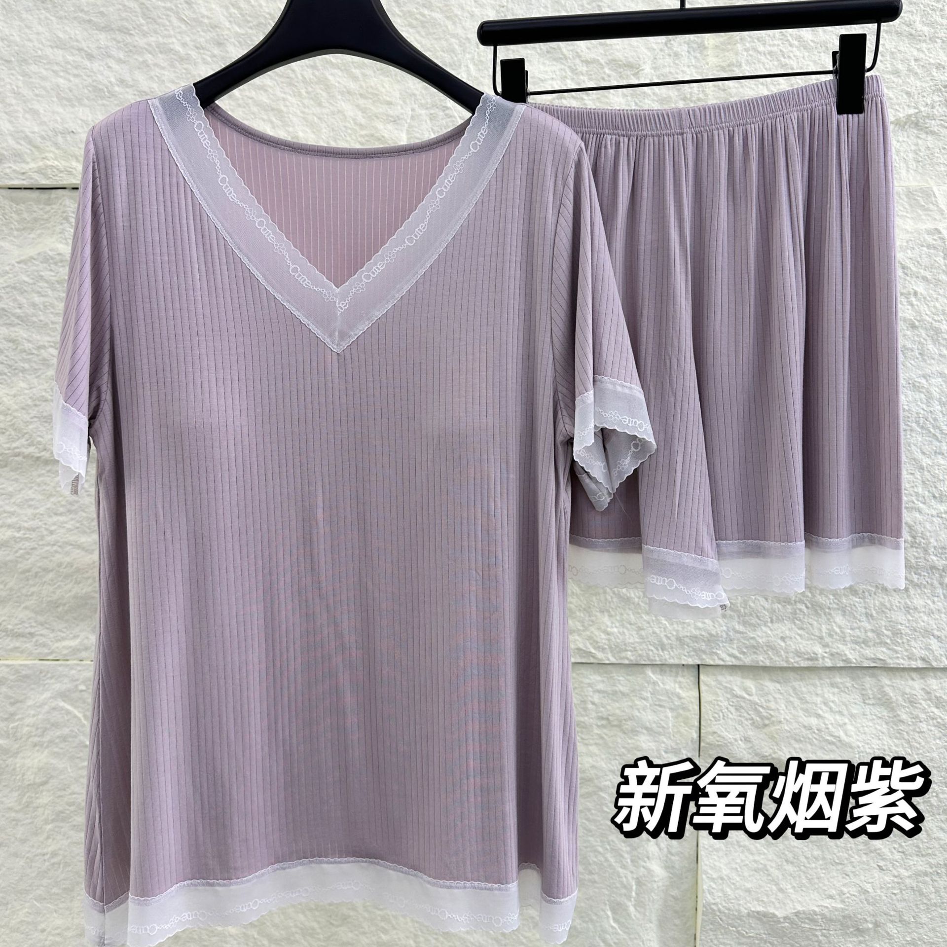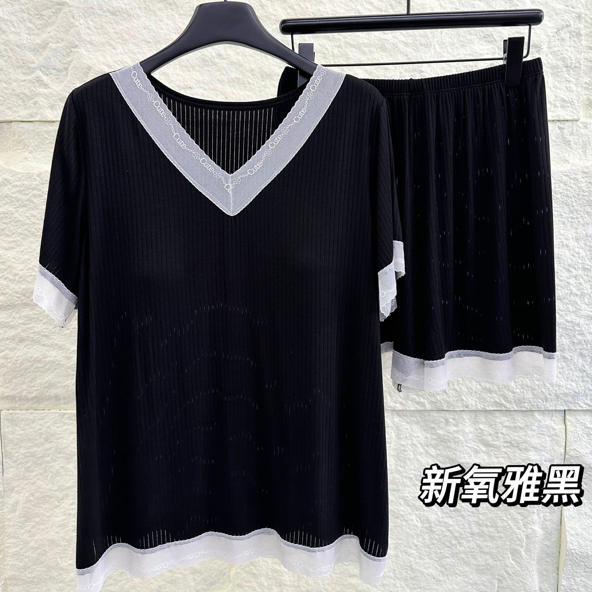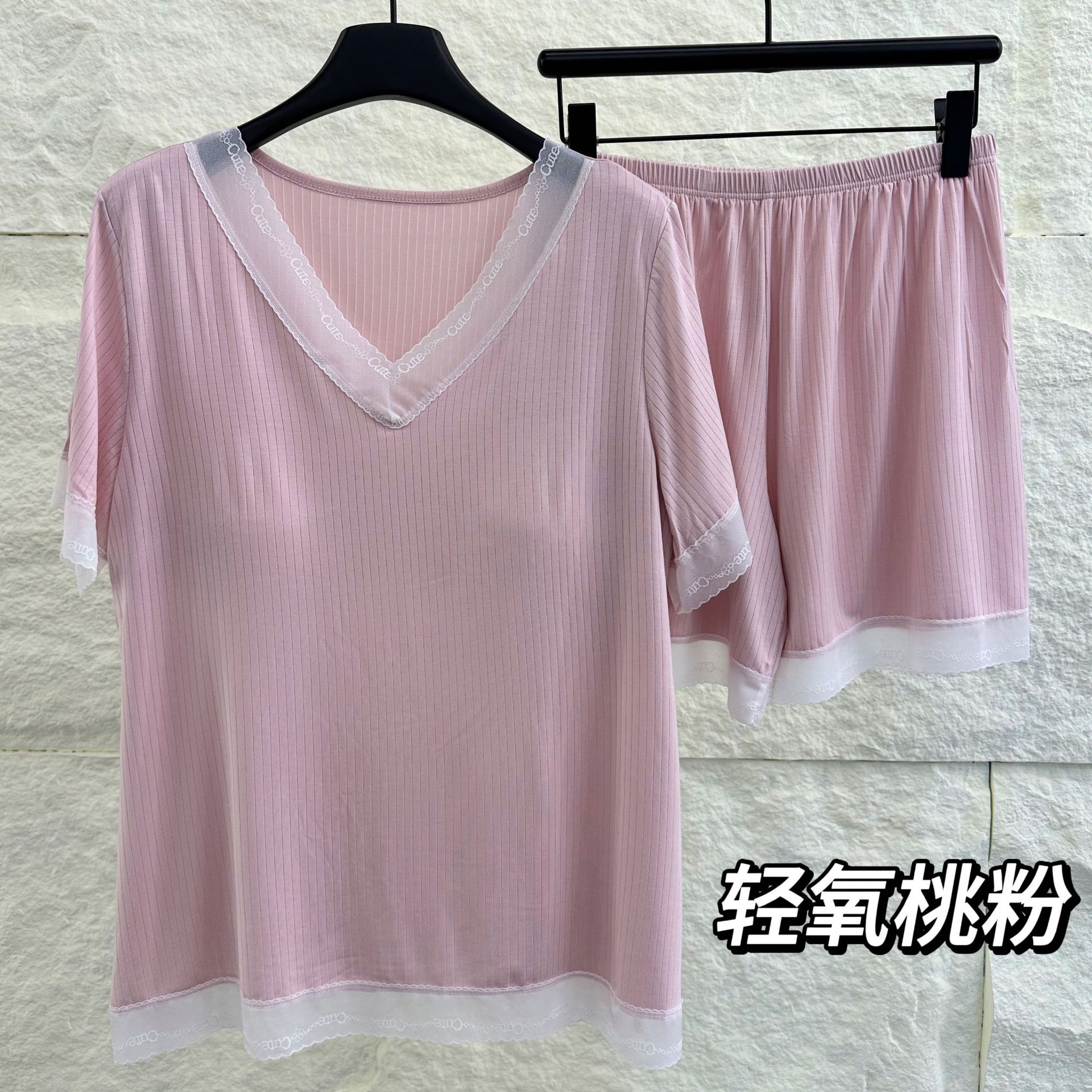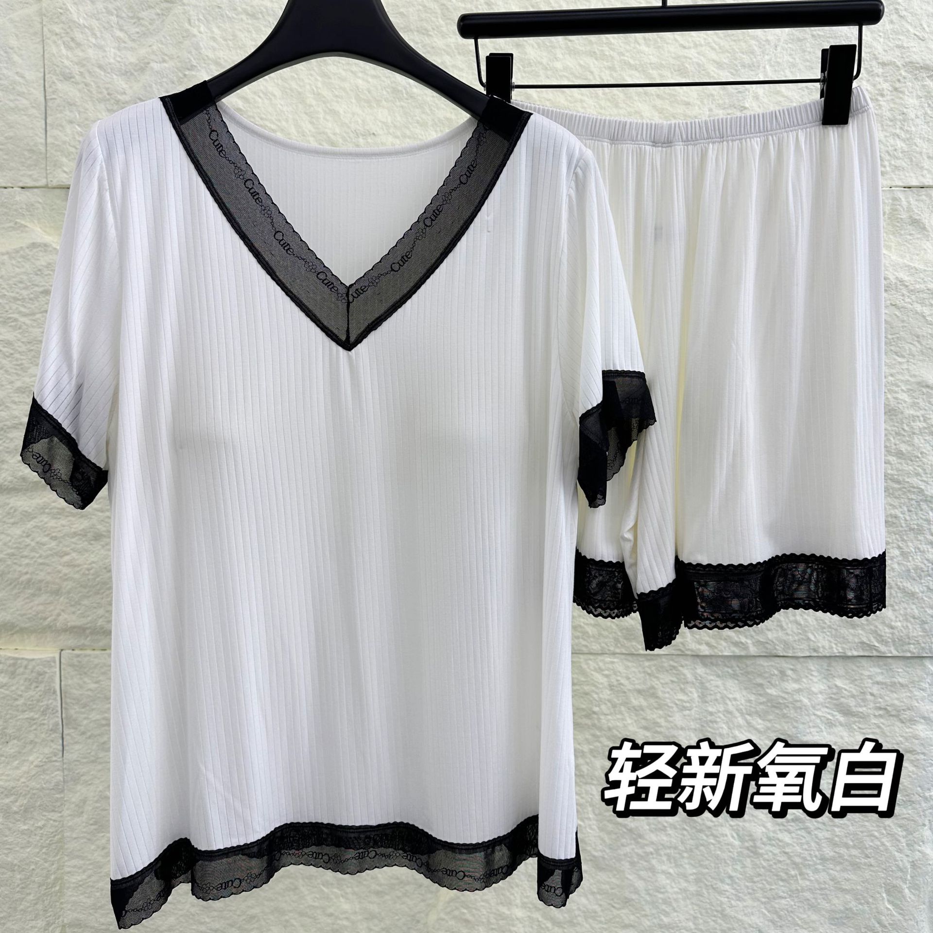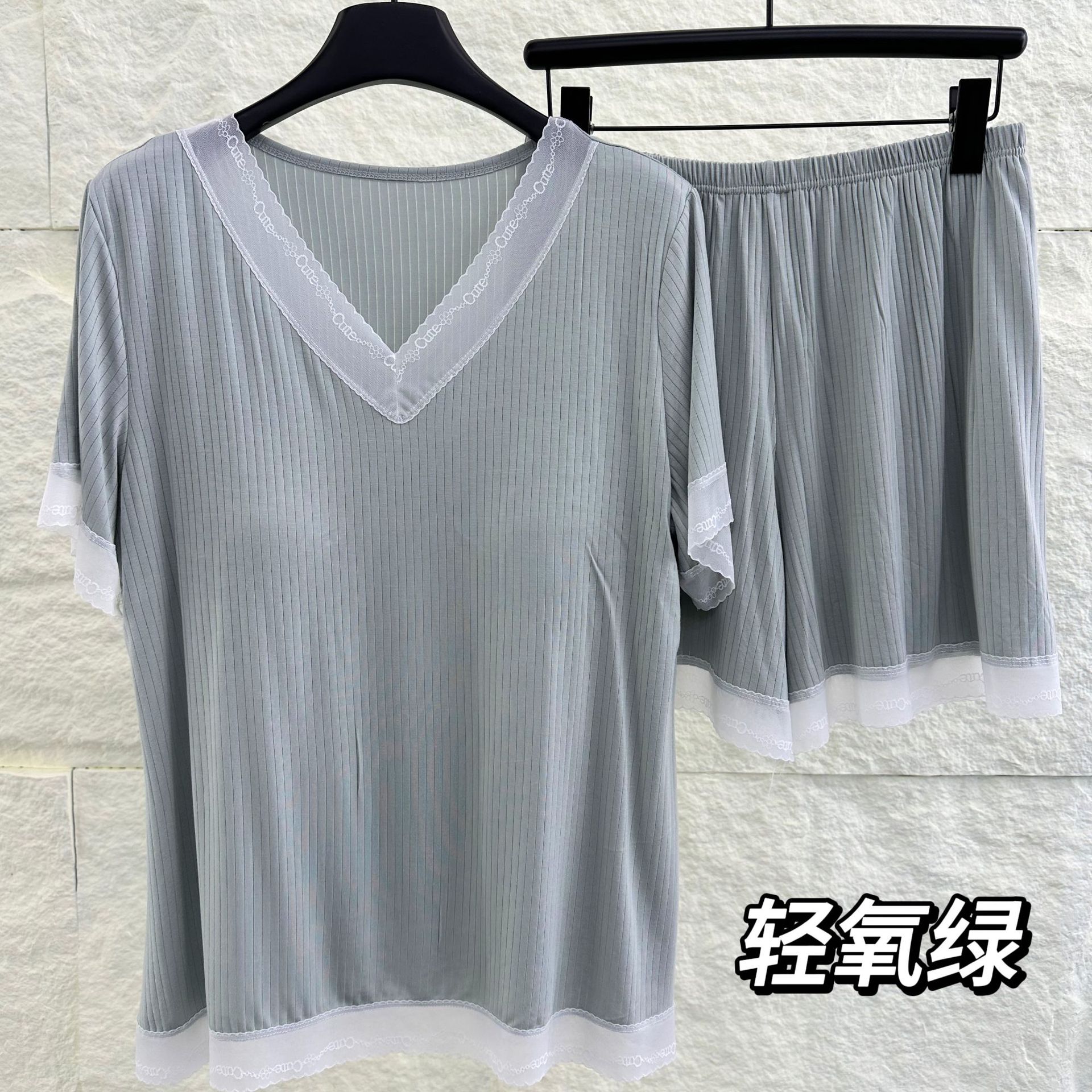 v-neck lace plus size pajamas nightdress summer ladies' homewear short sleeve thin loose soft and comfortable with chest pad 中文版