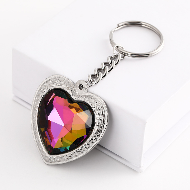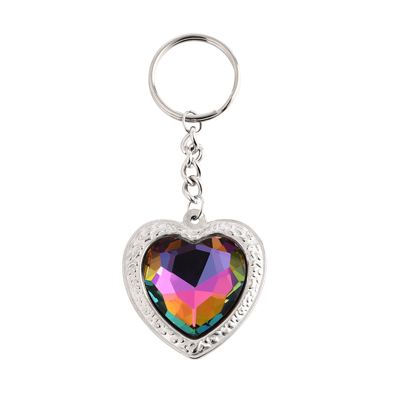 factory direct supply colored loving heart diamond stainless steel key ring heart shape with diamond reflective light key ring backpack pendant 中文版