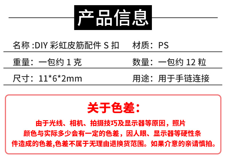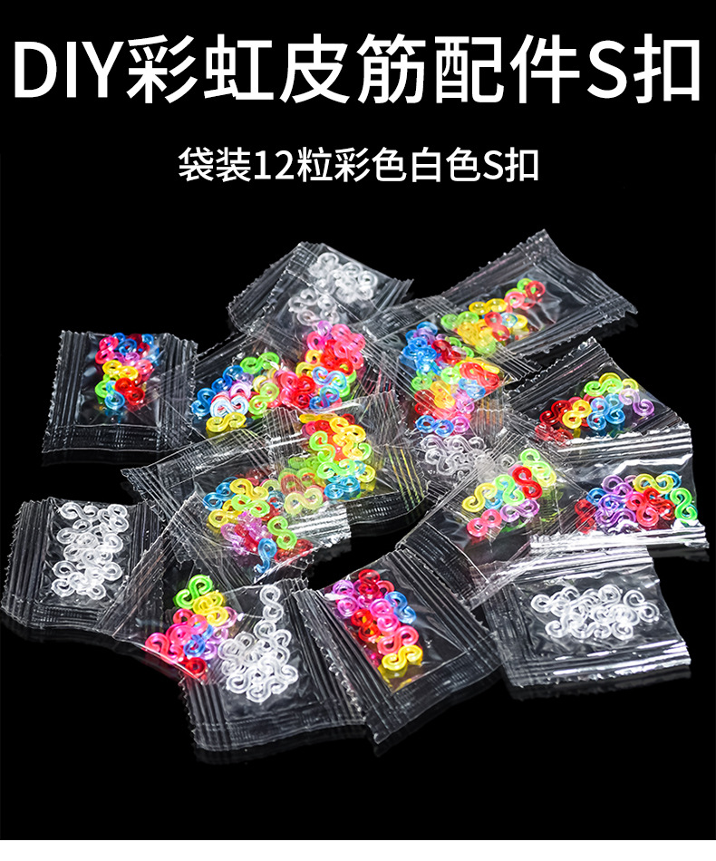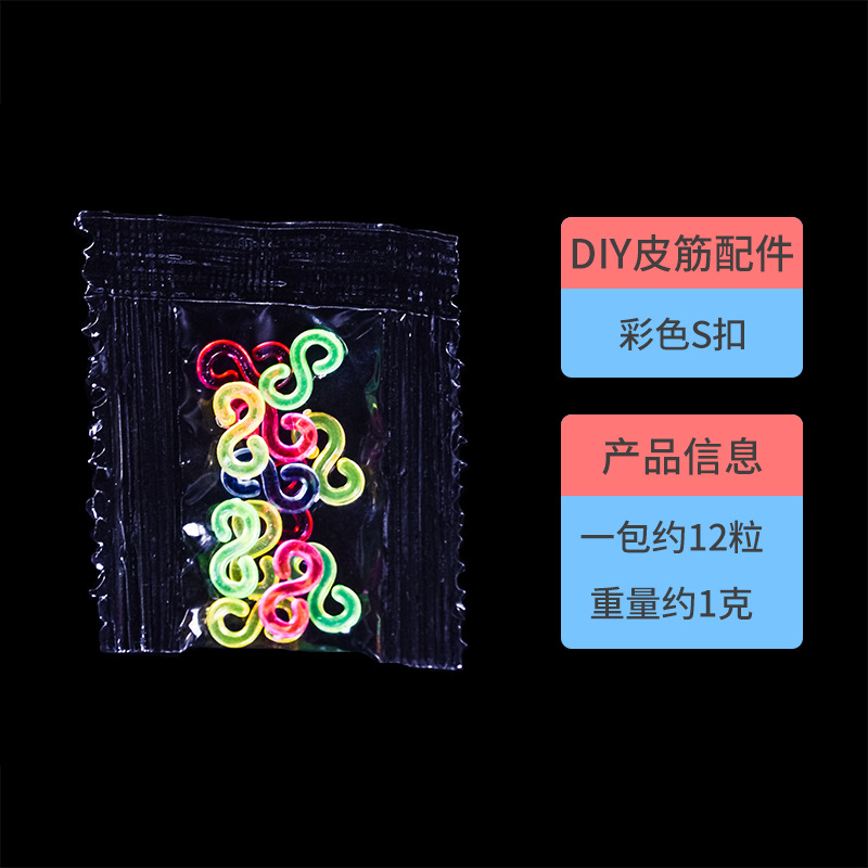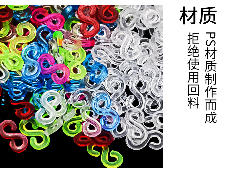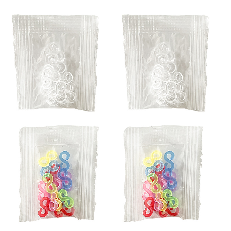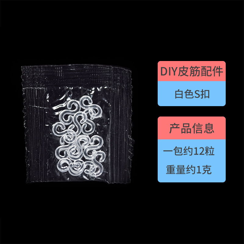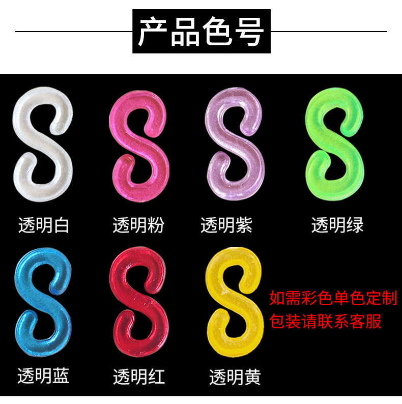 Product Name: White S Buckle, Semi-Transparent Colorful S Buckle (available in six colors: red, green, blue, pink, orange, and purple)