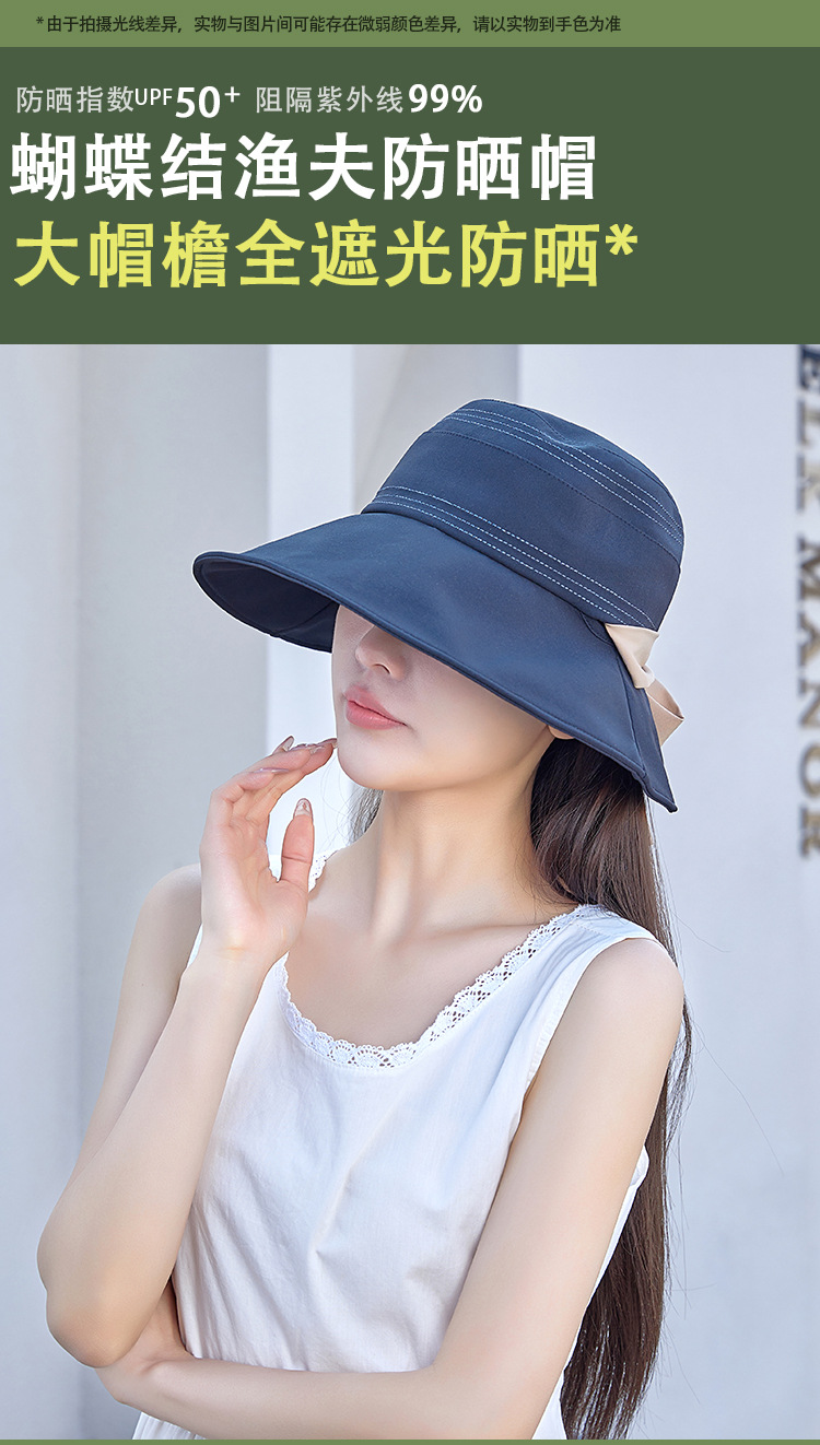 bowknot big brim bucket hat women's spring and autumn sun-proof basin hat korean style all-match japanese style face-looking small face cover sun-proof hat 中文版