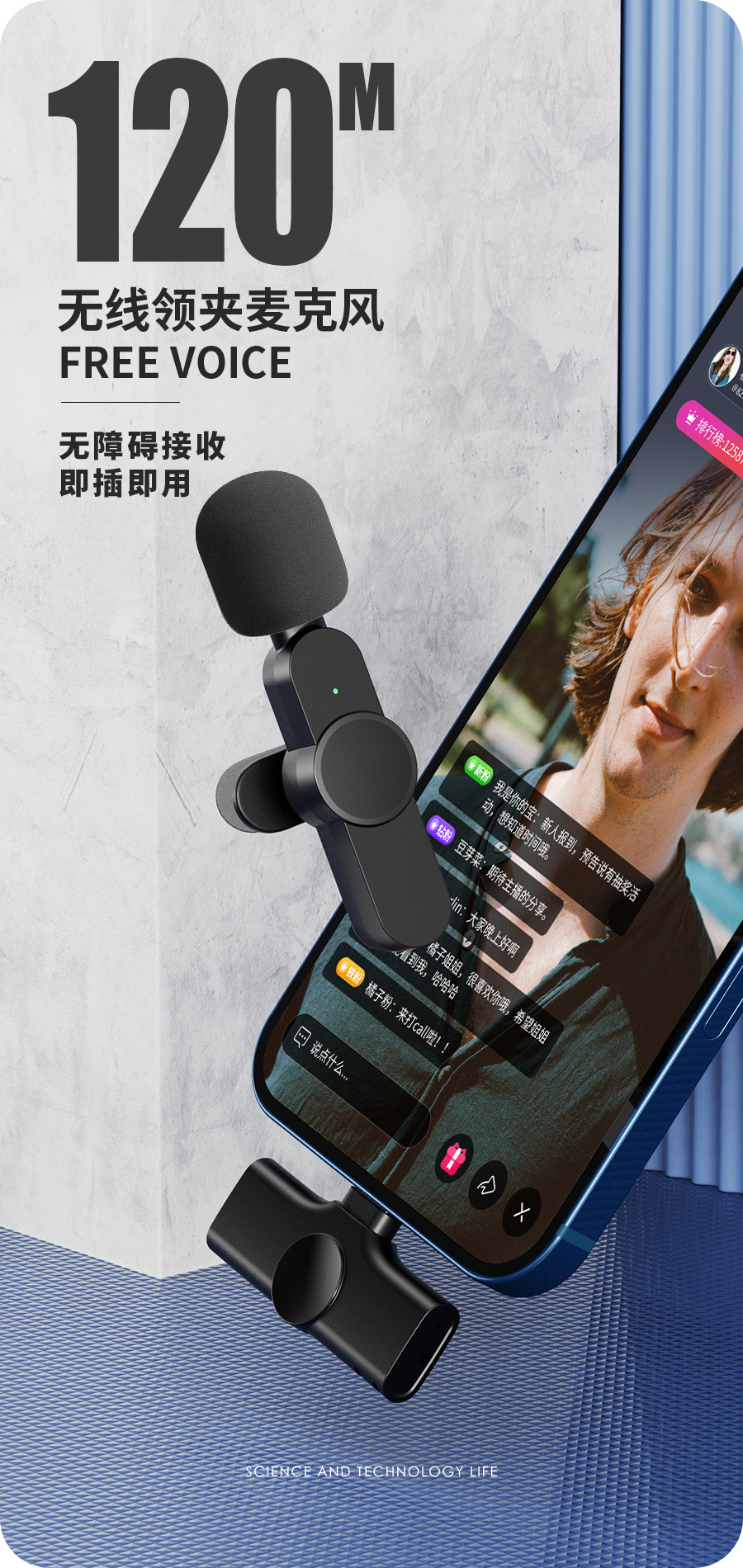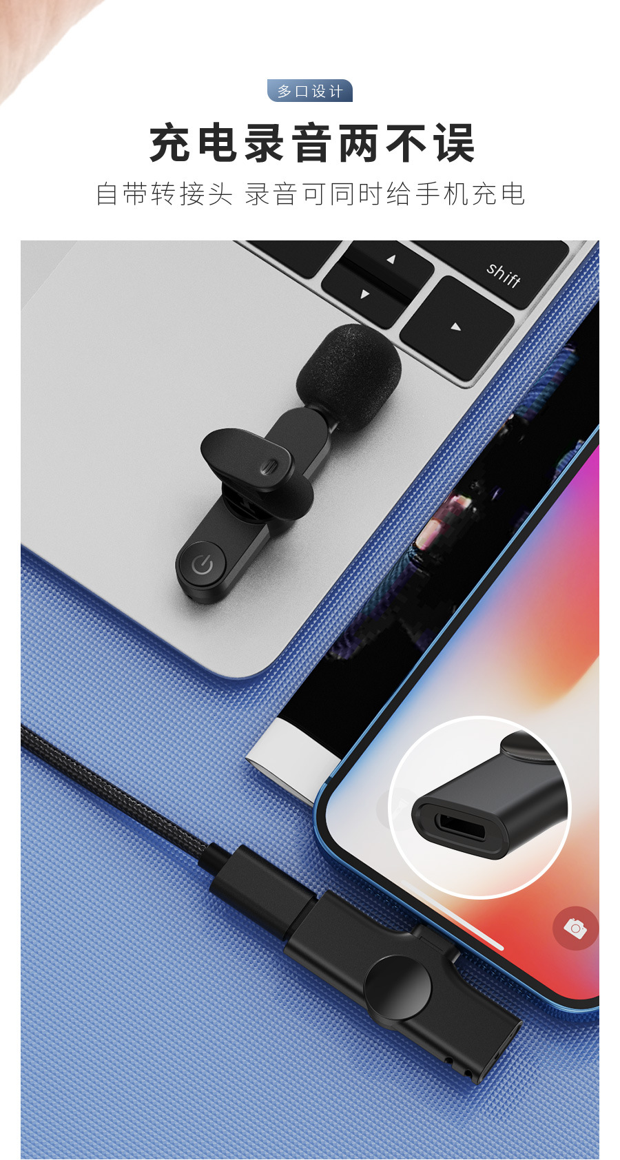 wireless collar clip microphone 2.4g intelligent noise reduction live broadcast short video recording shooting radio lavalier microphone