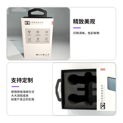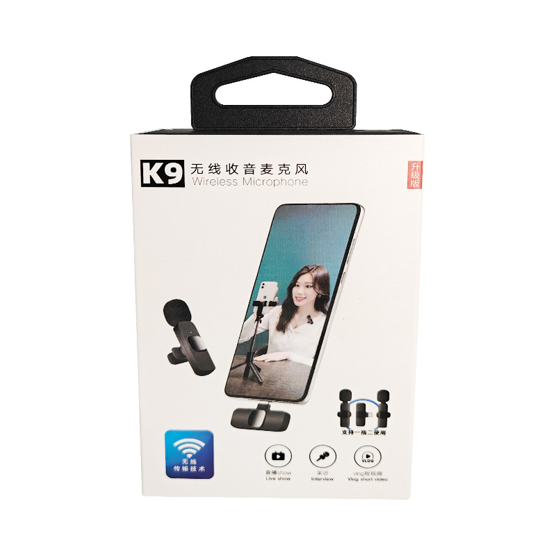 customizable collar clip microphone paper box packaging spot k8k9 wireless radio microphone with hook packing box