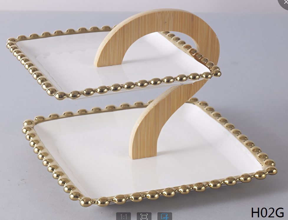 Two-tier fruit bowl Handheld nut bowl Ceramic nut bowl Seasoning box Cake fruit bowl Cake dessert bowl Combination of bamboo and wood with ceramic Wooden handle nut bowl Pure white fruit bowl