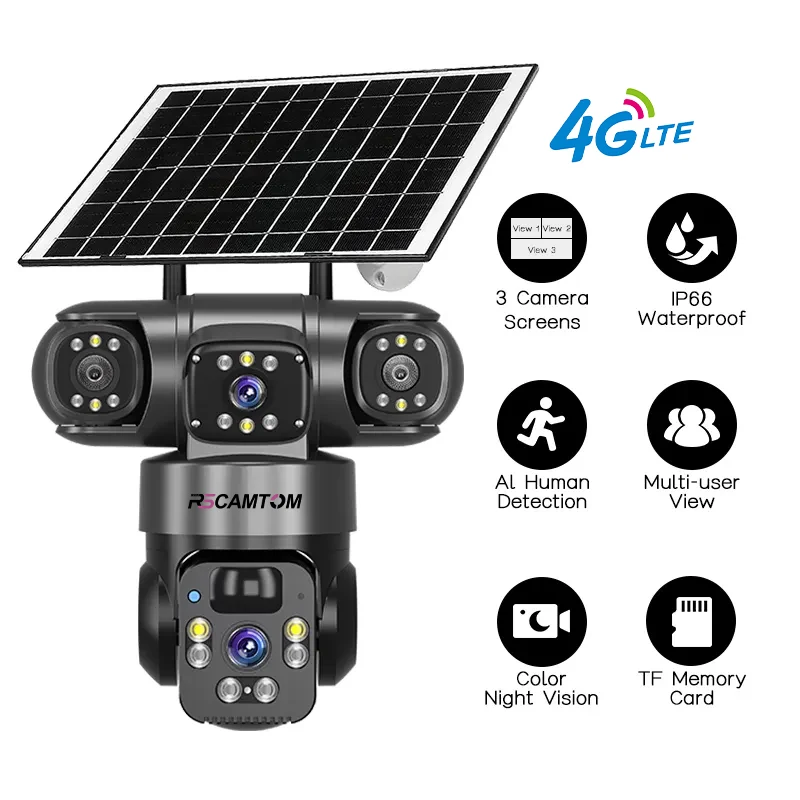 Outdoor4gSecurity Camera Solar Three-Screen Detection Alarm Two-Way VoiceOkamCCTV Door Cutting Camera