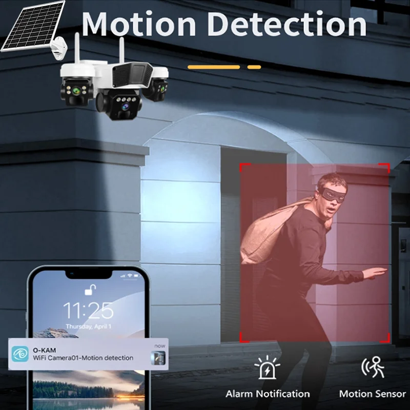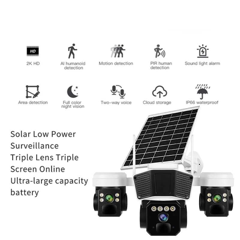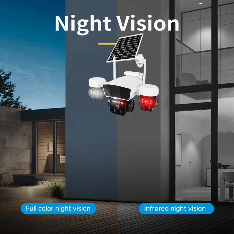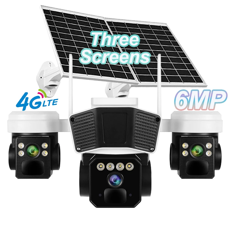 Multi Lens Cctv Camera Solar 4g Sim Card Okampro IP66 Waterproof Cloud Storage Solar Camera Outdoor