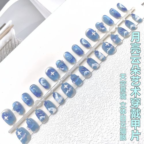 moon cloud art eye wear armor blue sky star moon cloud pure white handmade wear nail tip 中文版