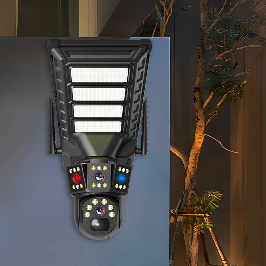Hot Sale Solar Outdoor Street Light Camera with Dual Lens4gNight Vision Safety LightSDMemory Card1Annual Warranty