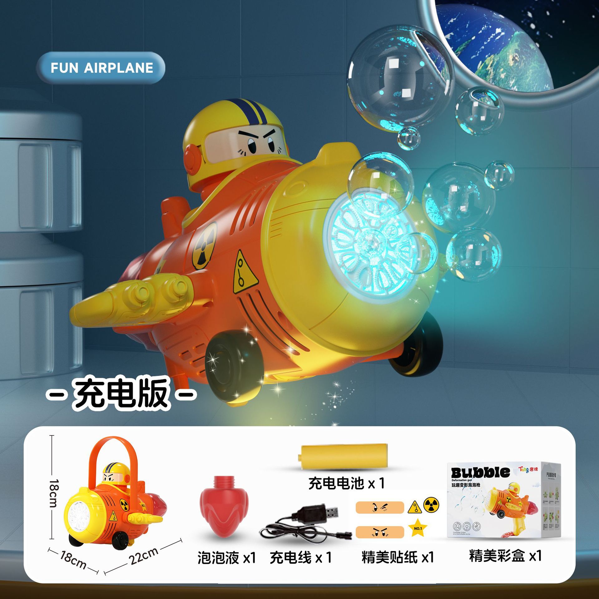 deformation dual-function bubble machine-rechargeable version [orange] free stickers + 100ml bubble water