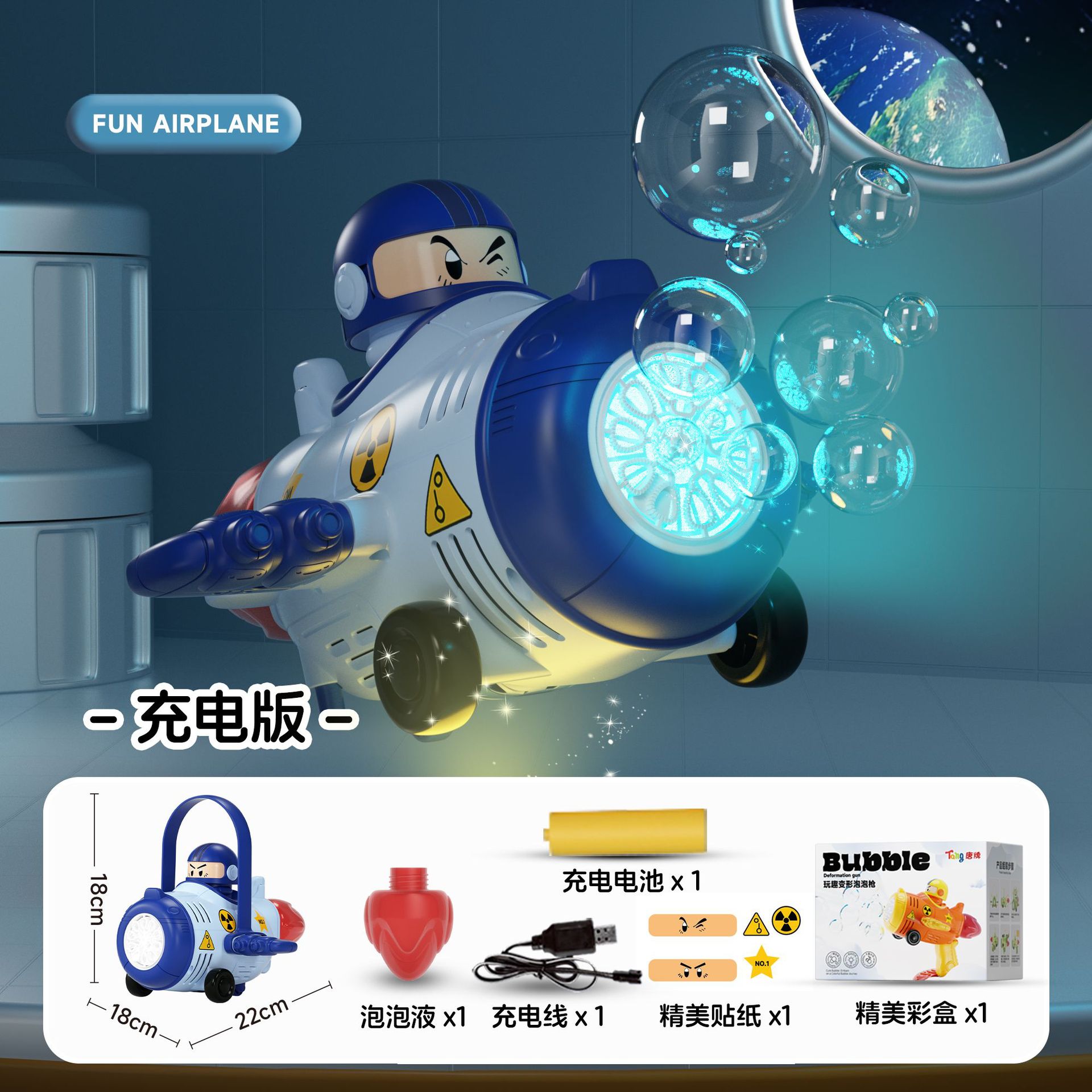 deformation dual-function bubble machine-rechargeable version [blue] free stickers + 100ml bubble water