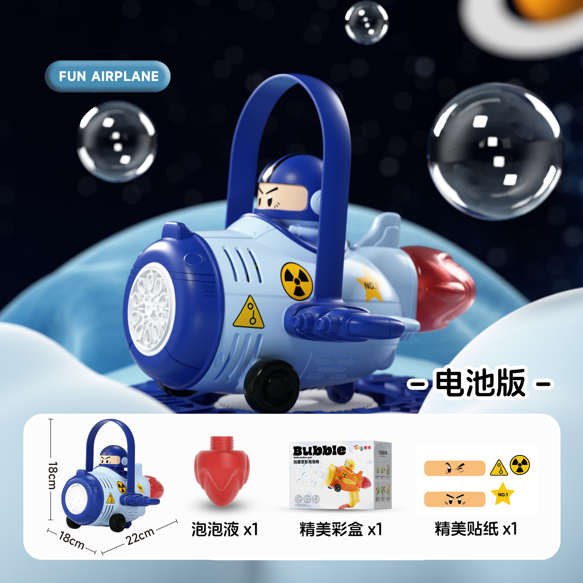 deformation dual function bubble machine-battery version [blue] free stickers + 100ml bubble water