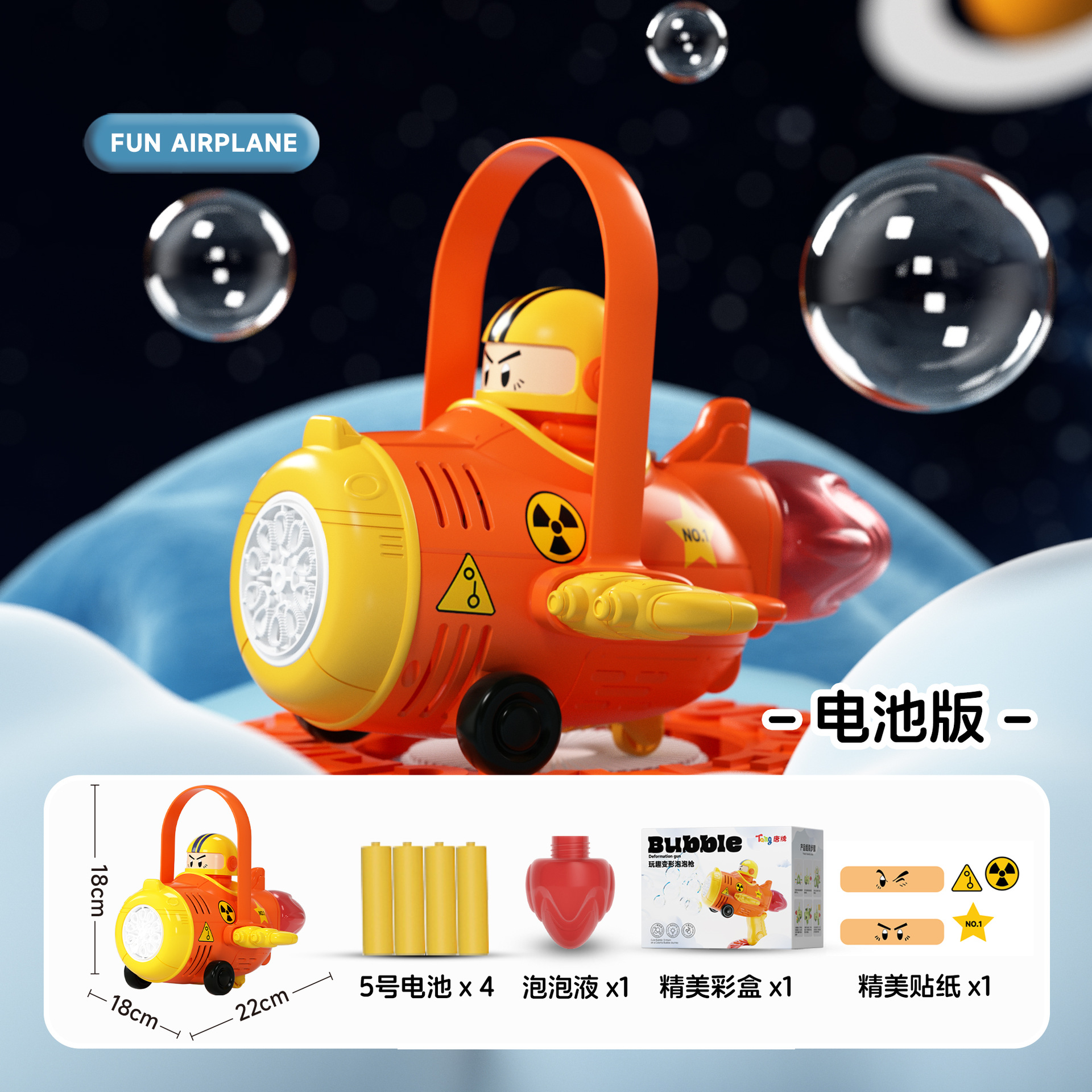 deformation dual function bubble machine-battery version [orange] free stickers + 100ml bubble water
