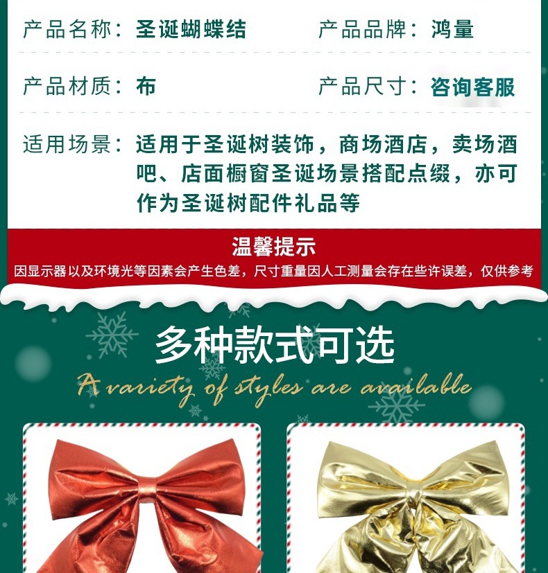 Christmas bows are sold by the box. Please consult the customer service before placing an order.