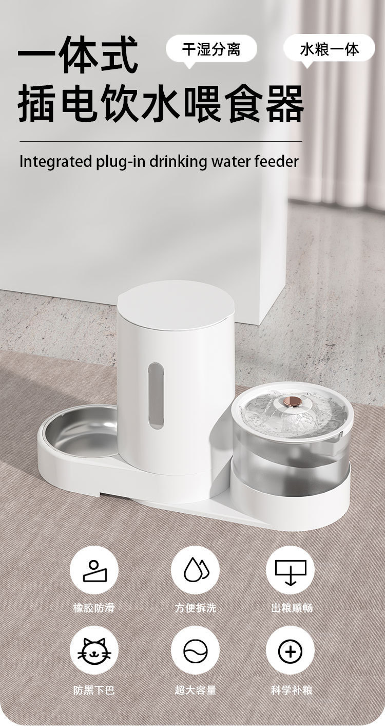 pet plug-in water dispenser automatic pet feeder dry wet separation large capacity water and food integrated bowl pet supplies