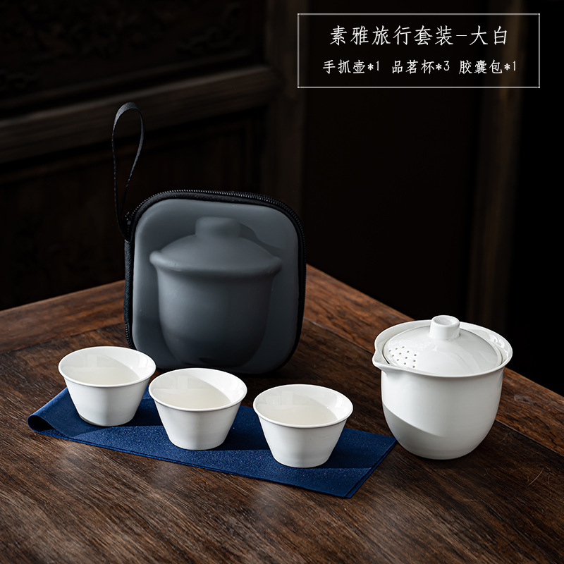 white/elegant one pot fills three cups + tea cans/leather packaging