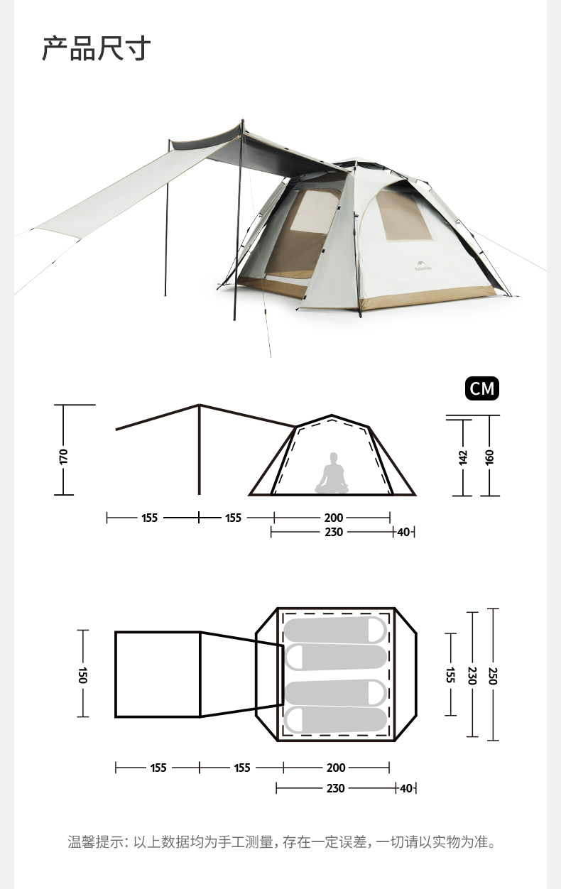 square easy-to-put-up tent-canopy version_oatmeal color