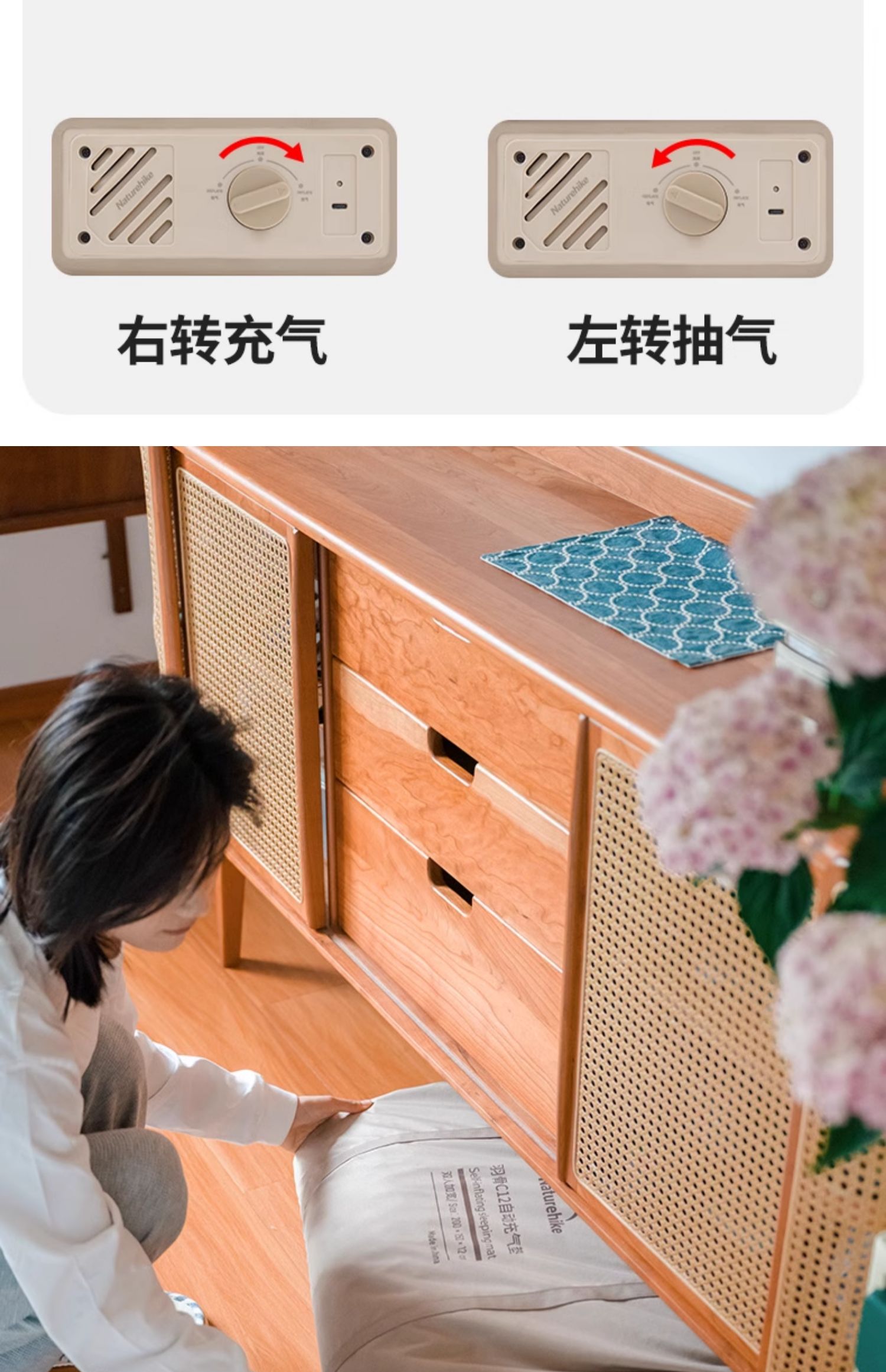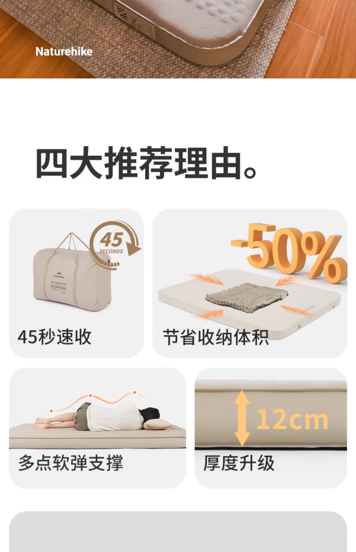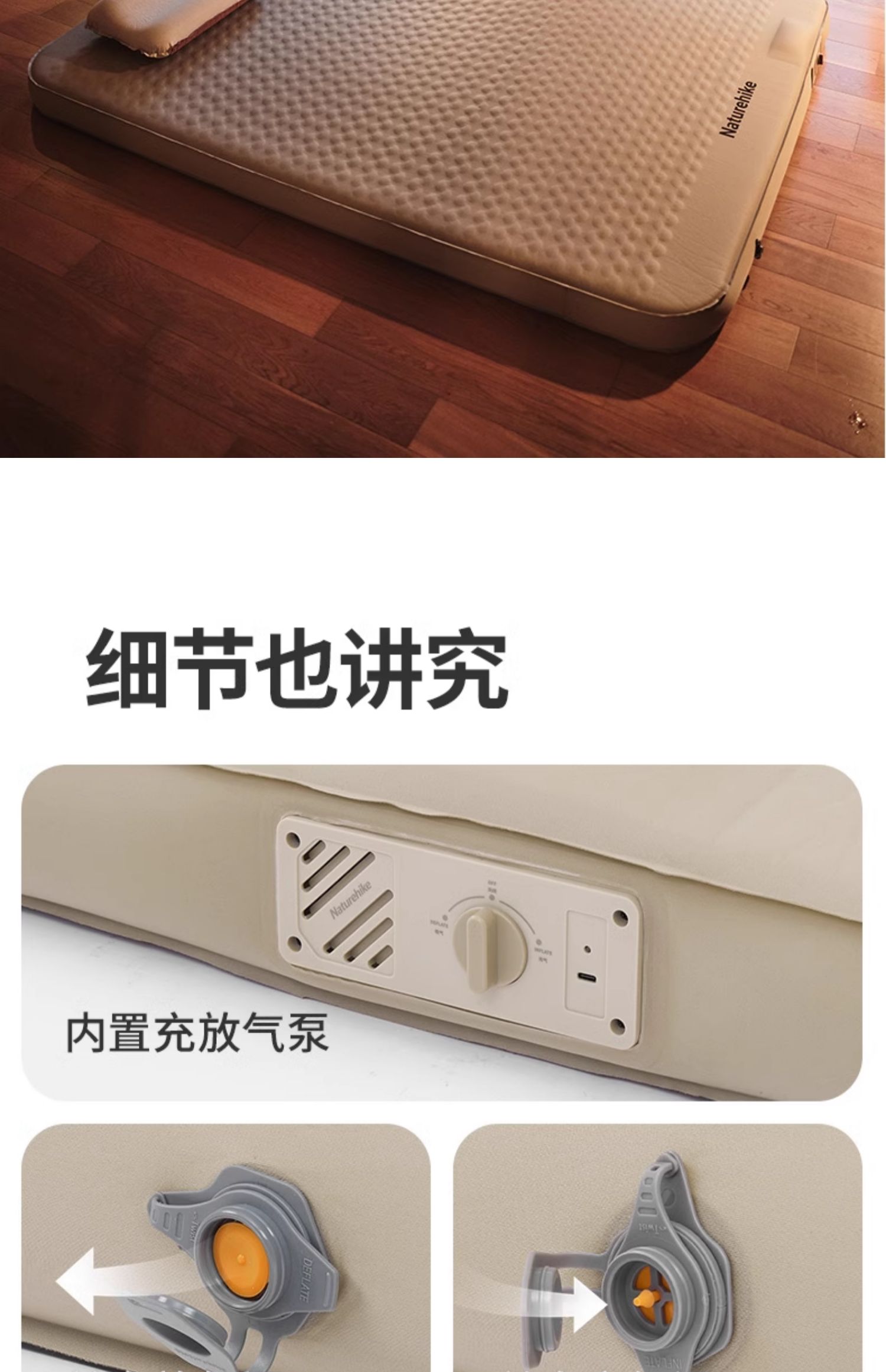 double-widened built-in pump [45 seconds filling and discharging] 12cm thick