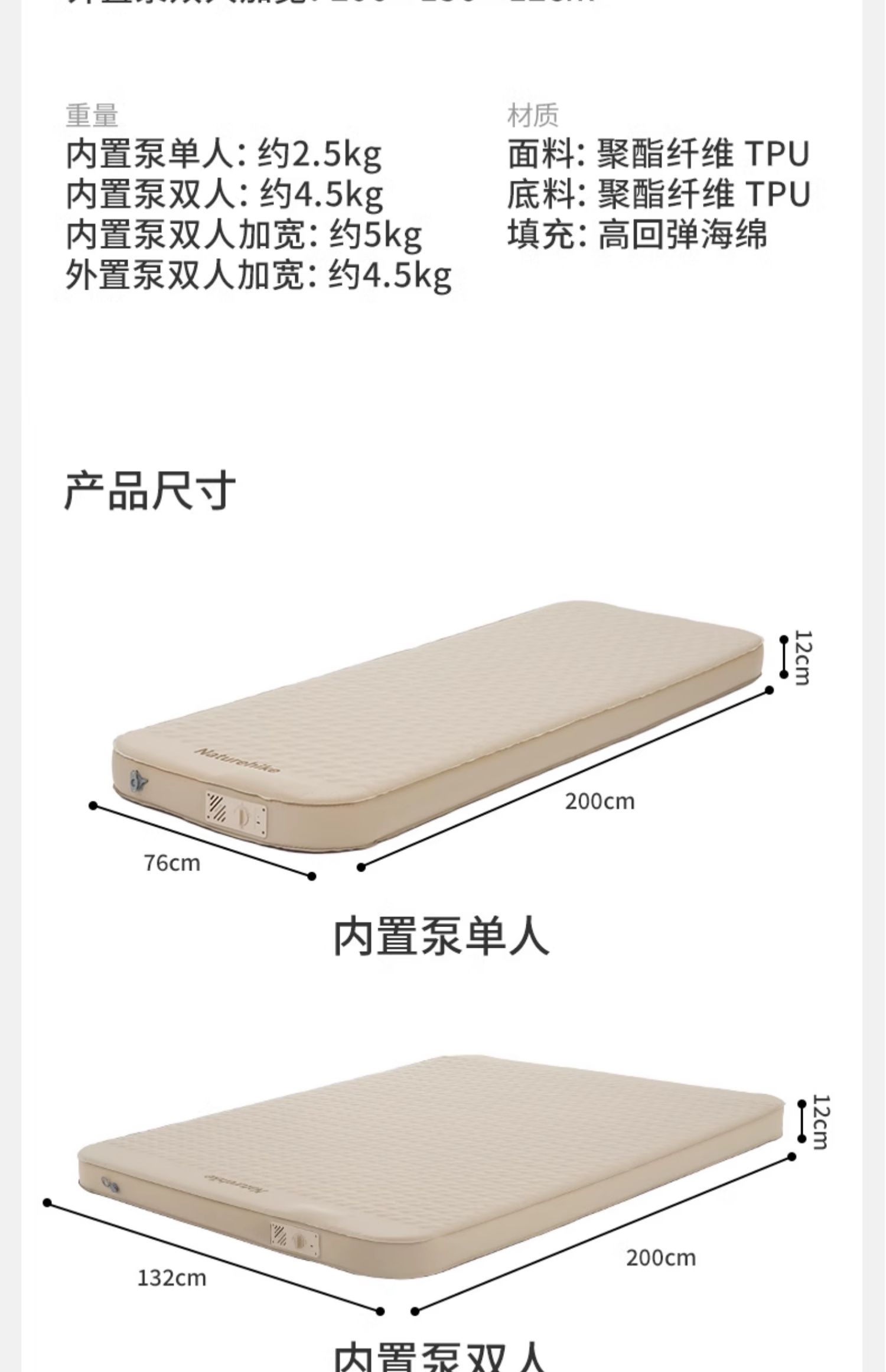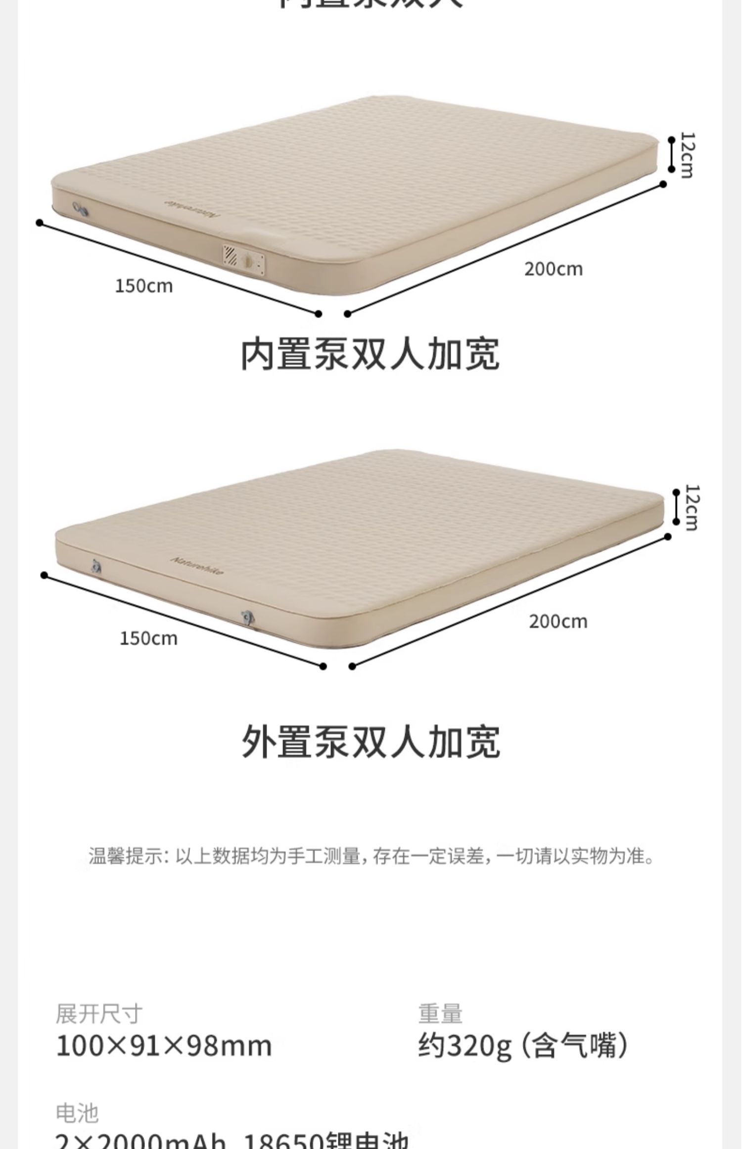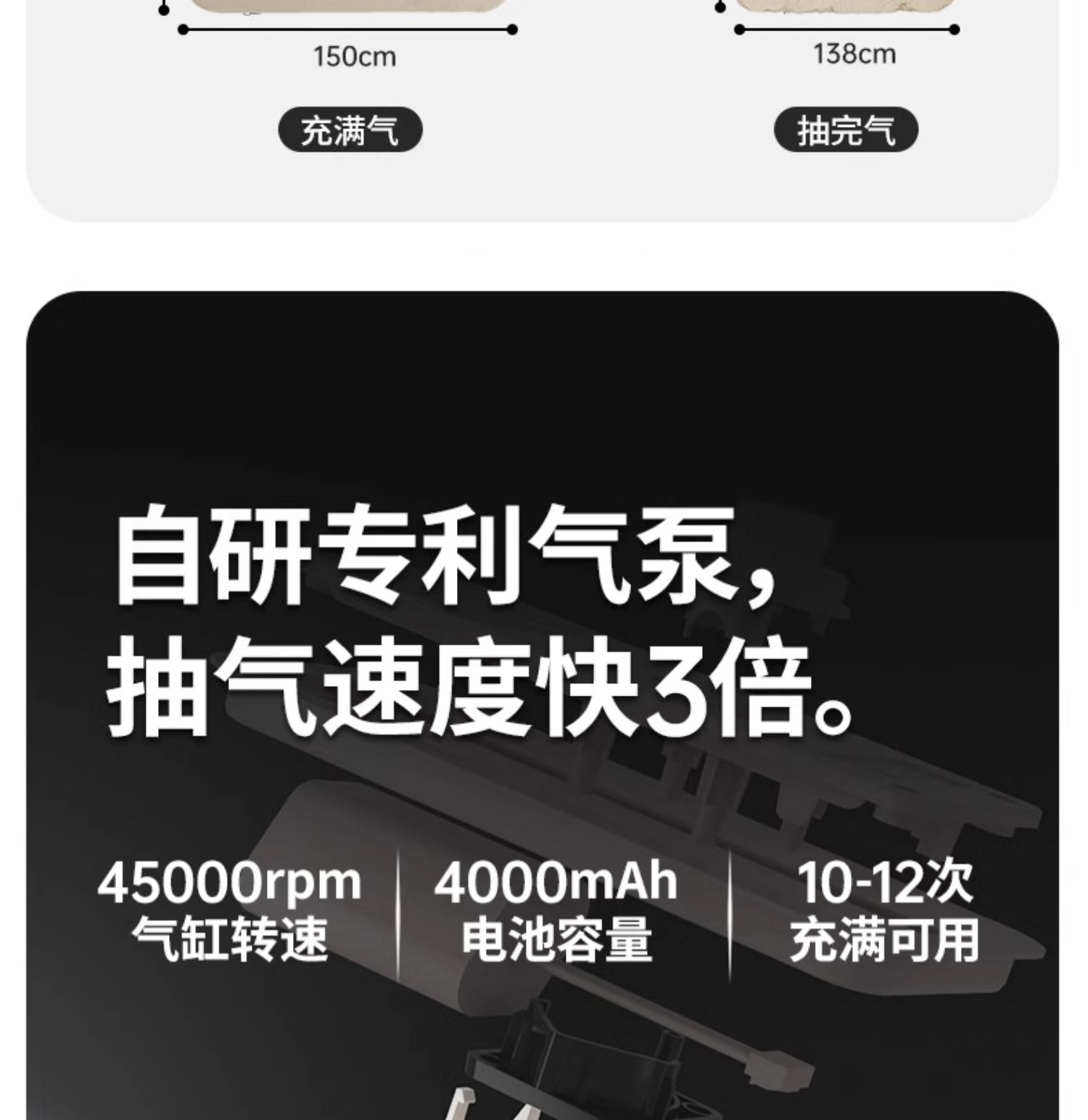 double built-in pump [45 seconds filling and discharging] 12cm thick