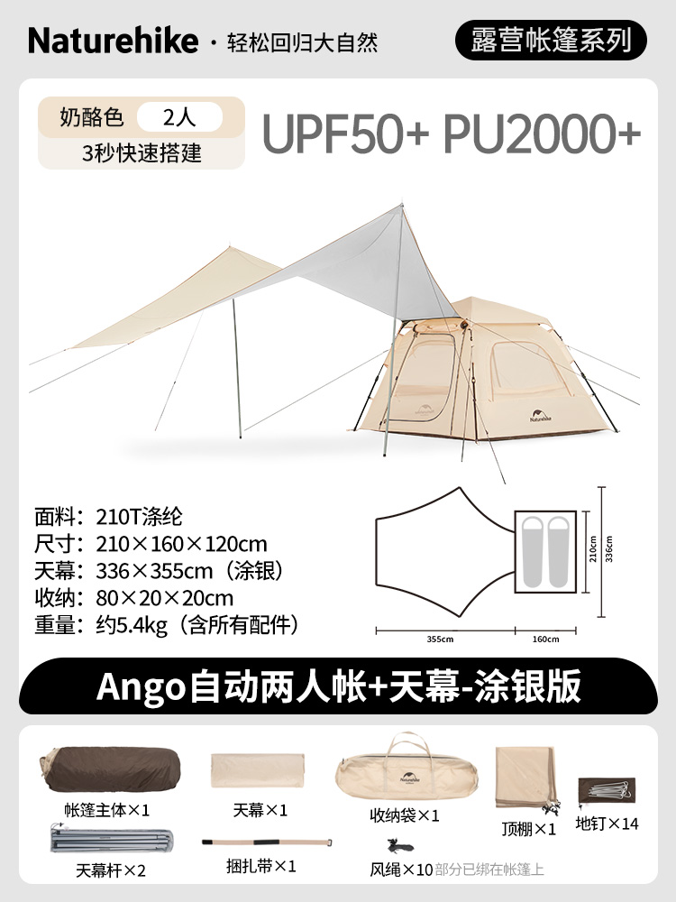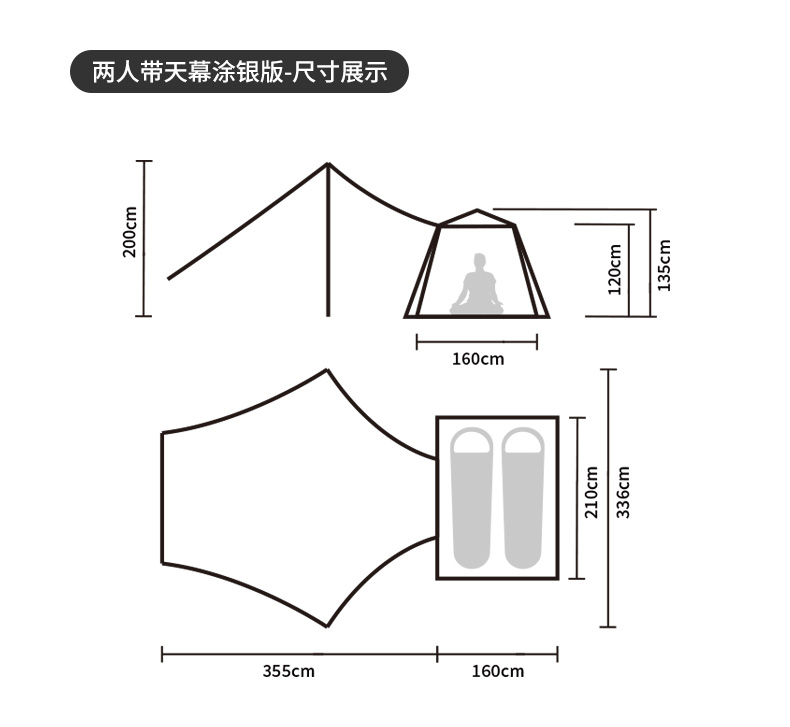 silver coated version [cheese color two-person tent + canopy]].