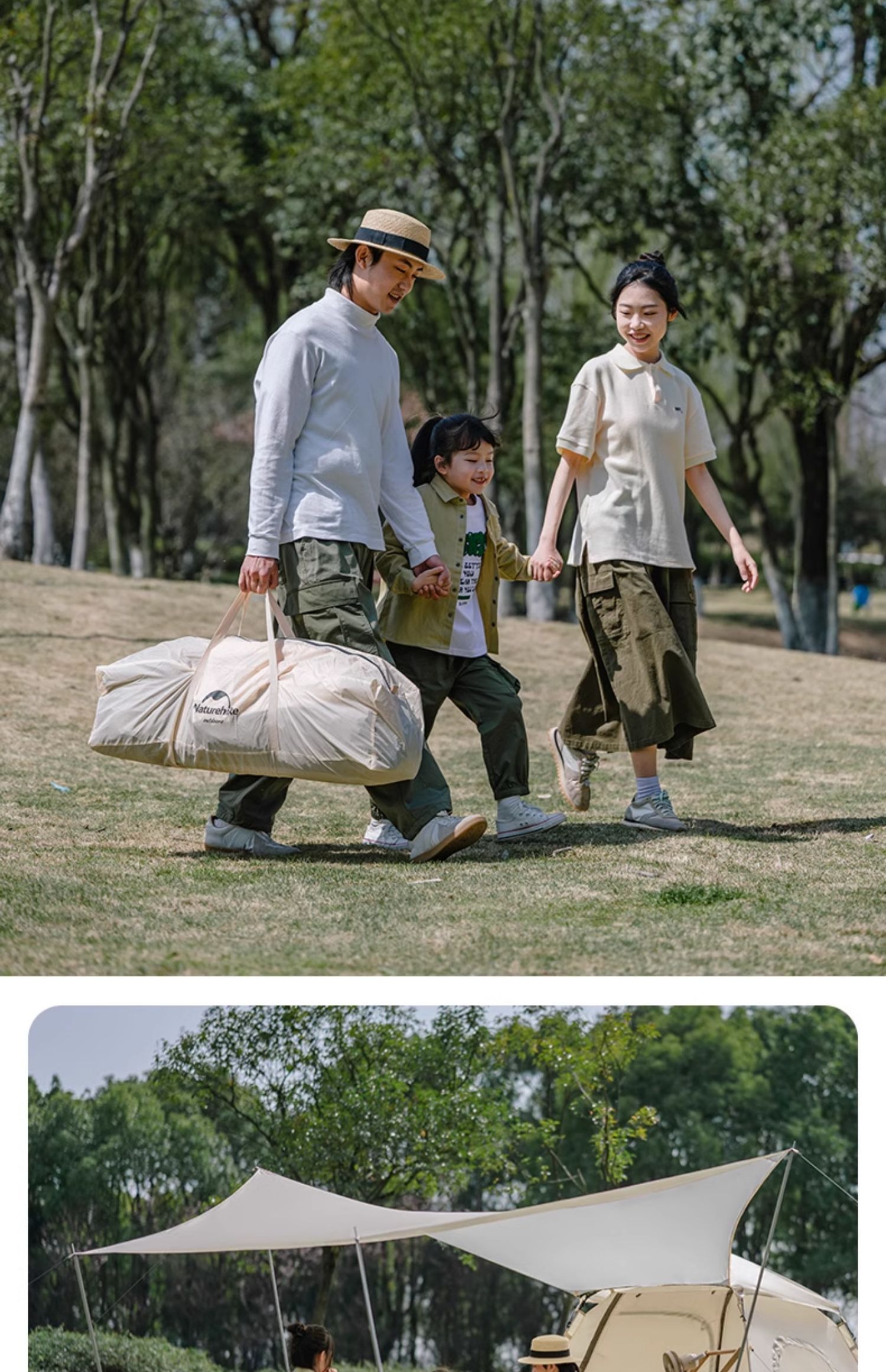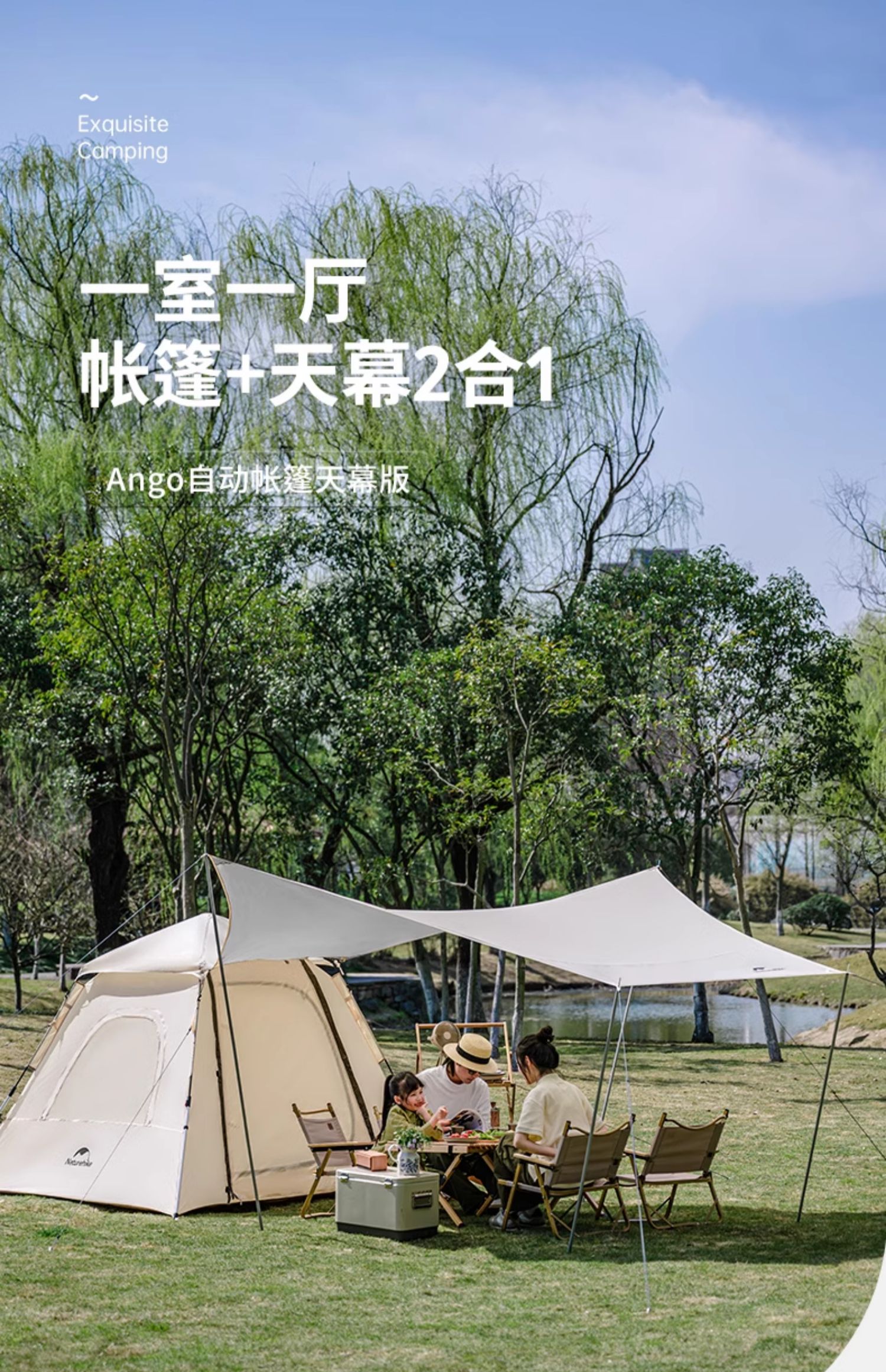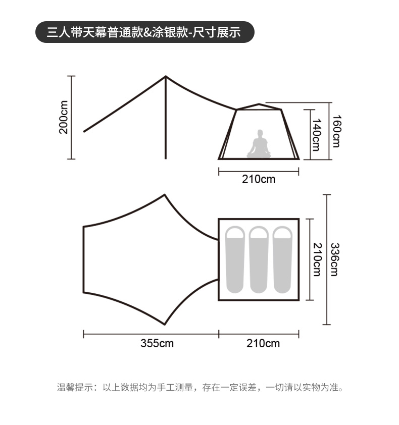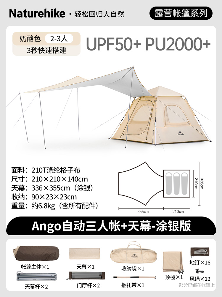 silver coated version [cheese color three-person tent + canopy]].