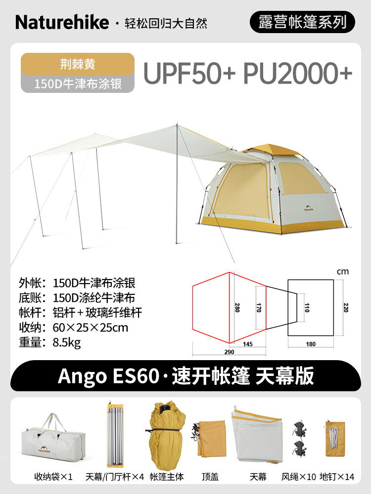 es60 thorn yellow three-person tent + canopy (silver pastebrushing)