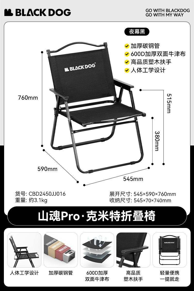 [thick plastic wood armrest, double oxford cloth] pro-night black