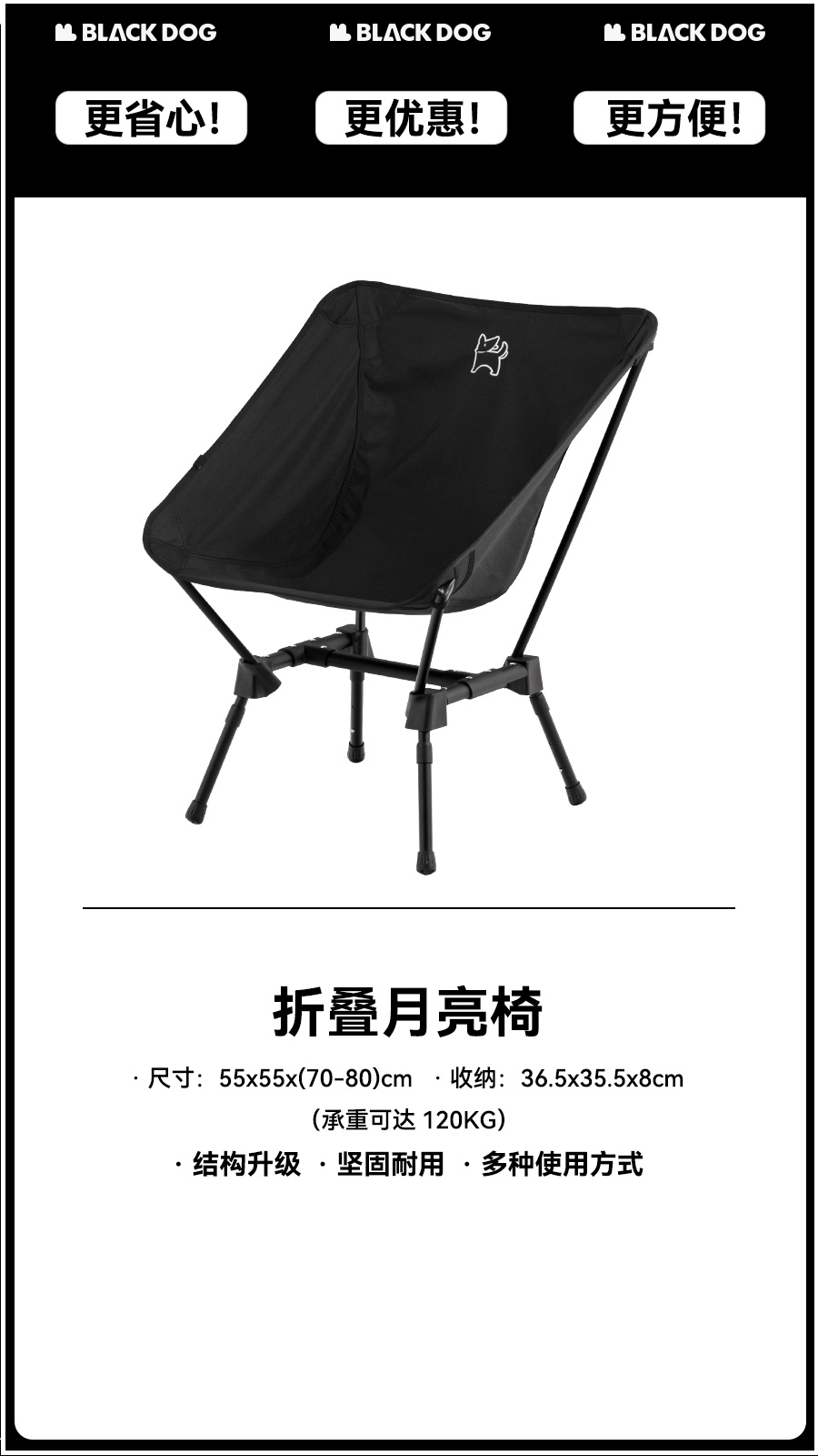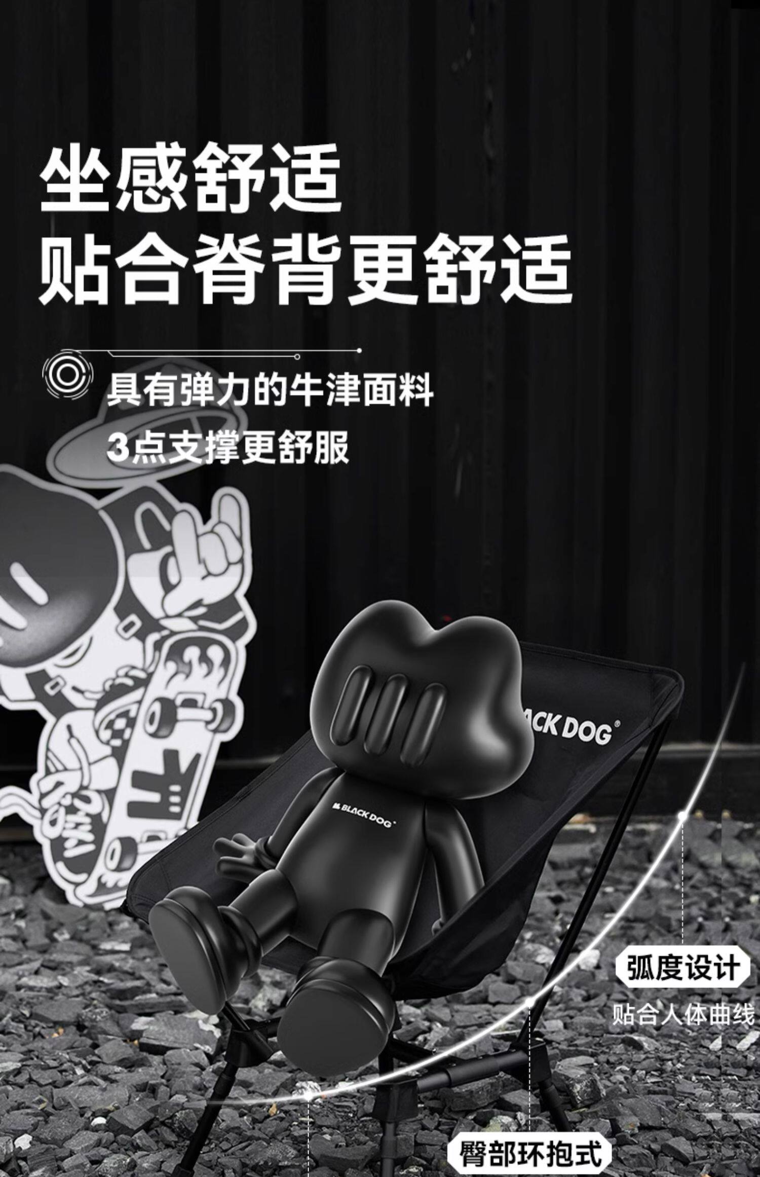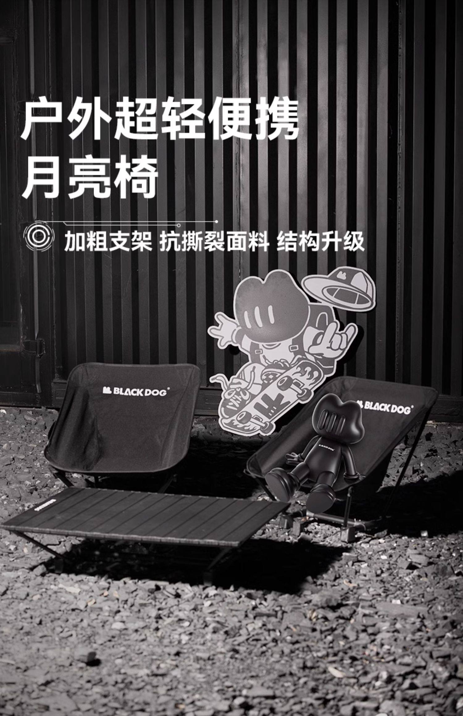 ultra light folding moon chair [night black] (logo dog logo or english) random delivery, mind carefully