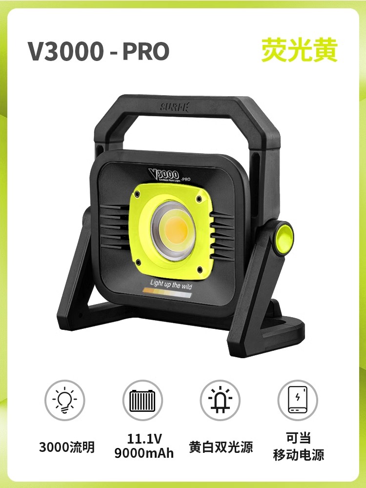 v3000pro fluorescent yellow (9000mah/3000 lumen/yellow and white dual light source)